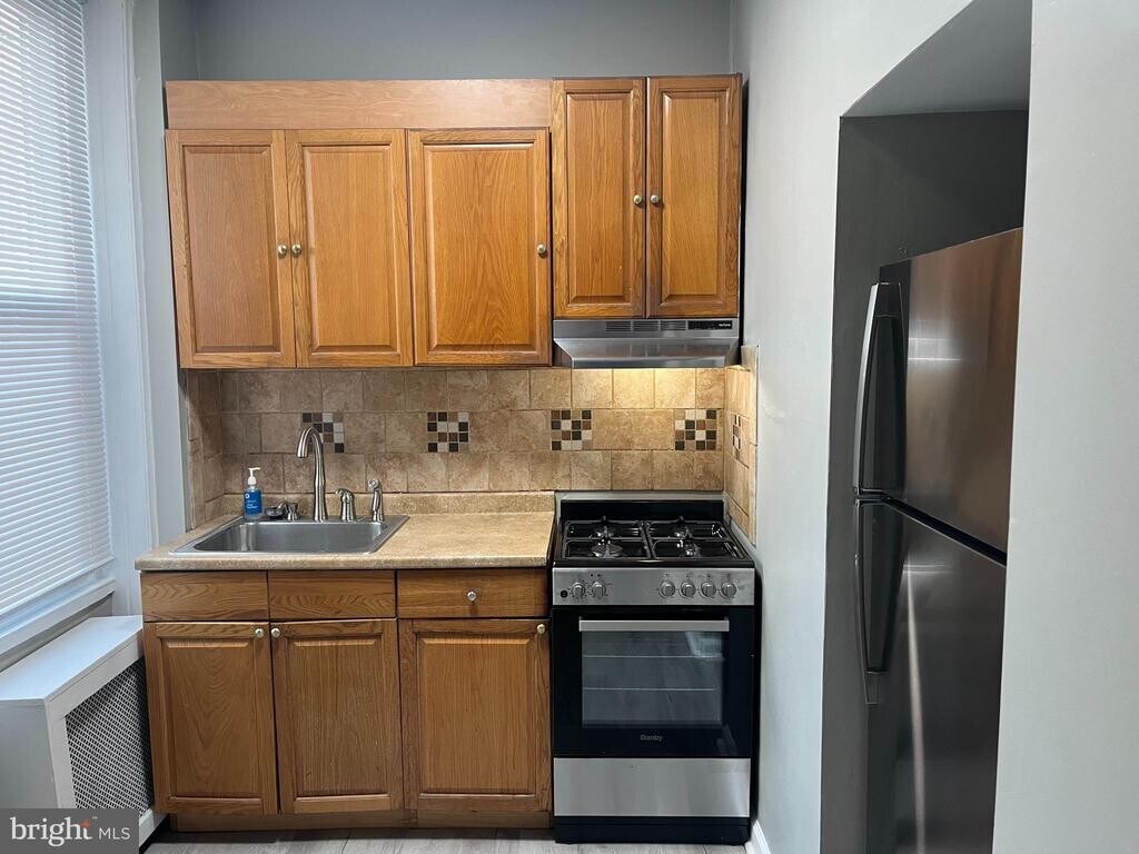 Welcome to the 1st Floor Front apartment at 2666 Bridge Street in the heart of Bridesburg! This beautifully remodeled unit offers modern finishes and a private entrance for added convenience and privacy. Step inside to find brand new luxury vinyl plank flooring and fresh paint throughout. The spacious living room features a ceiling fan and provides a comfortable setting for relaxing or entertaining. The apartment includes two well-sized bedrooms, both equipped with ceiling fans and ample natural light. The stunning, brand new bathroom boasts a ceramic tile finish with a shower/soaking tub combo. The eat-in kitchen has been completely updated and includes a new range/oven and refrigerator, offering both style and functionality. Additional amenities include shared laundry facilities in the basement and access to a large shared yard—perfect for outdoor enjoyment. This unit truly feels like new construction and is ready for immediate occupancy. Tenants are responsible for electric and gas (separately metered) and 1/5 of the water bill. Don’t miss this opportunity to live in a beautifully updated home in a convenient location!