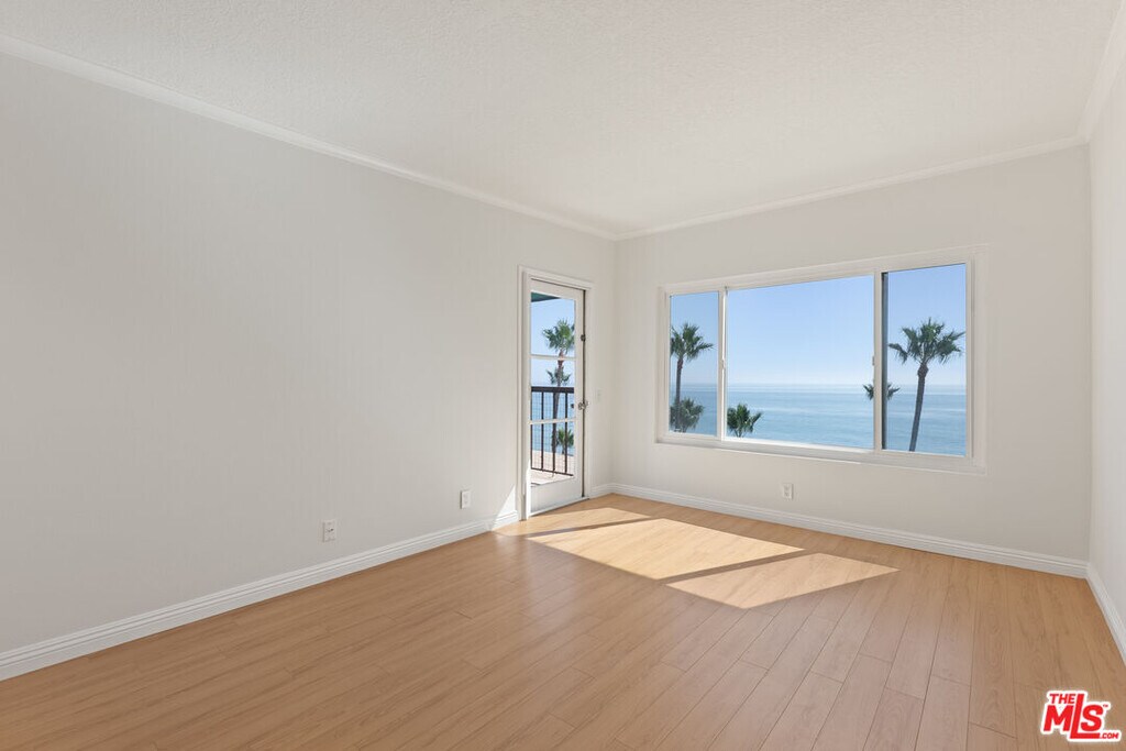 SEAGULL SERENITY" ---- ENDLESS VIEWS, EXCLUSIVE LIFESTYLE. Prime Malibu Coastal Lease - Ocean-View Resort Living -- Experience the art of seaside living in this impeccably presented one-bedroom, one-bath residence, where panoramic 180 degree ocean views and resort-style amenities define the pinnacle of Malibu luxury. Set within a prestigious guard-gated enclave with 24-hour surveillance and a staffed gatehouse, this ocean-view retreat embodies sophistication, privacy, and the effortless elegance synonymous with Malibu's coastline. The open-concept floor plan is designed to frame the Pacific at every angle, featuring a sun-filled living area with fireplace, mirrored wall, and seamless access to a private balcony overlooking the horizon-- a perfect spot for morning coffee, sunset wine, or simply listening to the soothing rhythm of the sea. The primary suite accommodates a king bed and offers both a walk-in closet and mirrored wardrobe, with direct balcony access revealing endless ocean vistas. A vanity area sits just outside the enclosed bath with a shower-tub combination, thoughtfully designed for both functionality and flow. The kitchen, complete with a bar counter, electric range, dishwasher, and microwave, opens gracefully to the dining area- ideal for casual entertaining or intimate dinners against a backdrop of ocean light. Ceiling fan and in-wall heating ensure year-round comfort. Community amenities rival a five-star resort: enjoy a heated pool and spa open until midnight, fitness center, sauna, clubhouse, and two tennis courts-- along with convenient elevator access connecting the pool and beach levels, ensuring effortless transitions throughout your stay. A private beach area with BBQs, shaded gazebos, volleyball court, and outdoor showers (at the pool, gym, and beach levels) completes the full Malibu coastal experience. A direct stairway to a world-famous surf break connects you to the sand and surf, inviting an active yet relaxing lifestyle defined by morning beach walks, sunbathing, ocean swims, and tranquil evenings under the stars. Additional highlights include two designated parking spaces (one subterranean and one upper-lot), ample guest parking, and pet consideration upon review. Offered furnished or unfurnished and available now -- this is your turnkey, ocean-view escape within one of Malibu's most coveted beachfront communities. MLS# 25604481