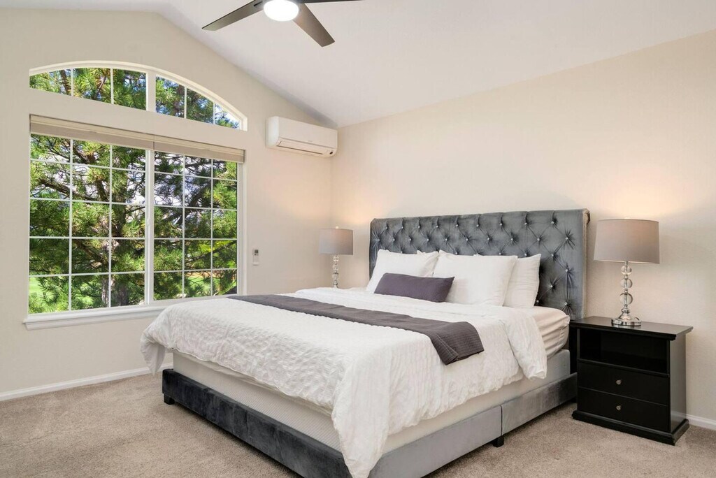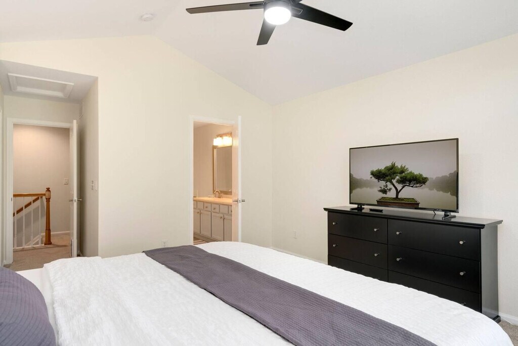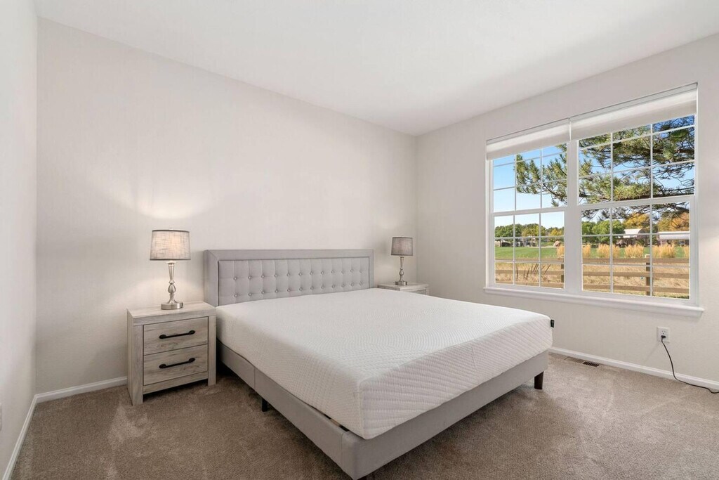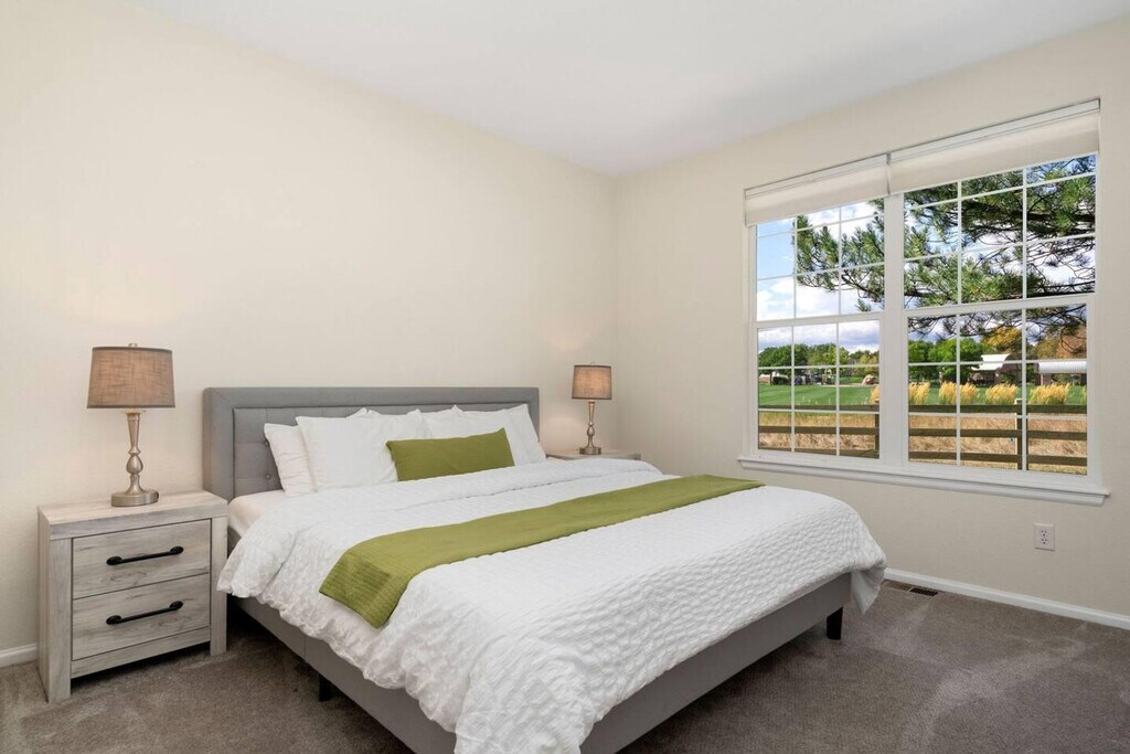 Discover the serene living of the beautifully remodeled 3-bedroom condo in Lafayette's Autumn Ridge neighborhood. This spacious, end-unit condo offers privacy and tranquility, backing onto a park with breathtaking mountain views to the West. The three-level home features a primary king-size bedroom on the main level with its own private bathroom, and another primary king bedroom upstairs, complete with a luxurious bathroom that includes a glass shower and a large soaking tub. The fully finished basement hosts a queen bedroom, a shared hall bathroom, a family room with a TV, and a wet bar area. A private office includes small gym equipment. The kitchen is upgraded with stainless steel appliances, ample storage space, and a coffee bar area. From the deck, dining area, or living room, enjoy the scenic views of the park and mountains. This property offers a 1-car attached garage with additional parking in the driveway. Dogs are allowed with approval; however, cats are not accepted due to allergy concerns. Perfectly placed for convenience, the neighborhood offers easy access to downtown Louisville and Lafayette, and is close to Good Samaritan Medical Center. It provides easy commuting routes to Boulder, Denver, and other surrounding cities. Community amenities include a pool, basketball, and tennis courts. Please note that initial supplies provided include 2 rolls of toilet paper per bathroom, 2 round hotel-size bar soaps per bathroom, 1 hotel-size shampoo/conditioner per full bathroom, 1 roll of paper towel, 1 packet of dishwasher detergent, 2 trash bags size-13-gallon, 1 small box of laundry detergent (enough for one load), and garbage can liners in each bedroom/bathroom small garbage cans. Guests are responsible for replenishing these items as they are not restocked. Cleaning supplies are not provided due to safety issues. The private office is equipped with small gym equipment, enhancing your work-from-home experience. [SI]