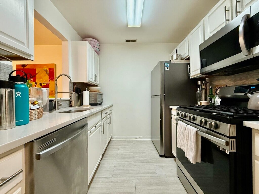 Welcome to still newer construction built 2001, well maintained home. First floor unit with two bedrooms/1 bath, spacious living area, washer and dryer in unit (not coin operated so no hazzle), separate kitchen and dining. Move to this well kept unit ready for December, one car parking is available for additional fee. This home speaks comfort and beauty. Unique layout, separate side entrance apartment for privacy. Located in one of the desirable area close to mini shopping mall, pharmacy, near DMV, closer to Bayonne, minutes to West Side Light Rail and Danforth Light Rail Station, bus on Kennedy Blvd going to JSQ transfer to NYC. Close to many restaurants, mini stores, gas station, schools and daycares. Call for an appointment!