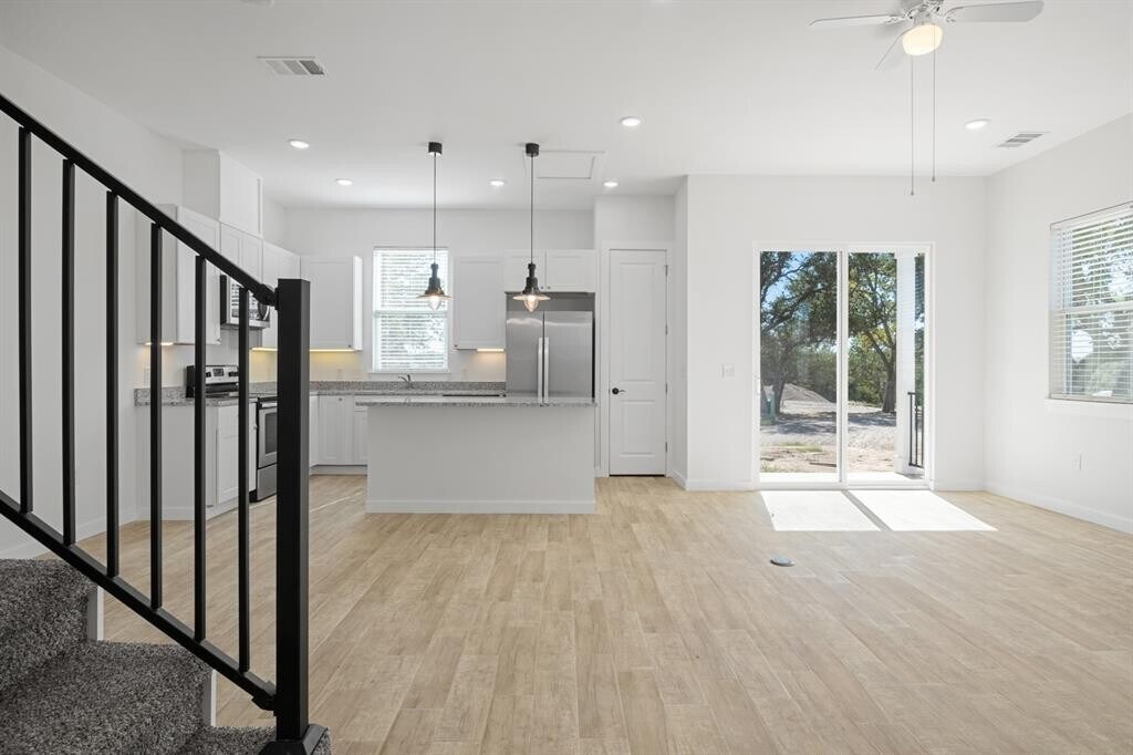This newer construction, modern farmhouse condo rental is available in the heart of the Hill Country in Dripping Springs, TX for early March move in. With easy access to 290, but tucked away in the oak trees, this 1,500 sq ft condo townhome offers 2 full bedrooms, 2.5 bathrooms, and a bonus room - perfect for a nursery, office, or even could be used as a 3rd sleeping room. On the first floor you will find an attached 2-car garage, open concept living, kitchen, and dining, along with a half bath downstairs. On the second floor you will find the guest bedroom, bonus room with front-facing balcony, and guest bathroom on the frontside of the unit, and an expansive master suite on the back side of the unit. The master boasts vaulted ceilings, an impressive walk through closet, and beautiful en-suite bathroom with walk-in shower and dual sinks. Off the master you will find an second balcony, this one offering amazing views of a morning sunrise facing the back of the unit. A stackable washer and dyer is also located on 2nd level in the laundry room. The townhome offers beautiful natural light, crisp white walls, modern kitchen and bathroom finishes, and all bedrooms are located on the 2nd level. The unit also includes a 20x20 grassed area on the back of the property. Owner prefers a 12 month lease, 6mo available for premium, renter to pay all utilities, and small pets negotiable with additional deposit. Newer construction unit, just completed in 2021, unfurnished, fridge & w/d included! No smoking. Excellent location in Dripping Springs, just minutes from Mercer Street and located in DSISD near Walnut Springs, DSMS, and DS Highschool! MLS ID 3143420