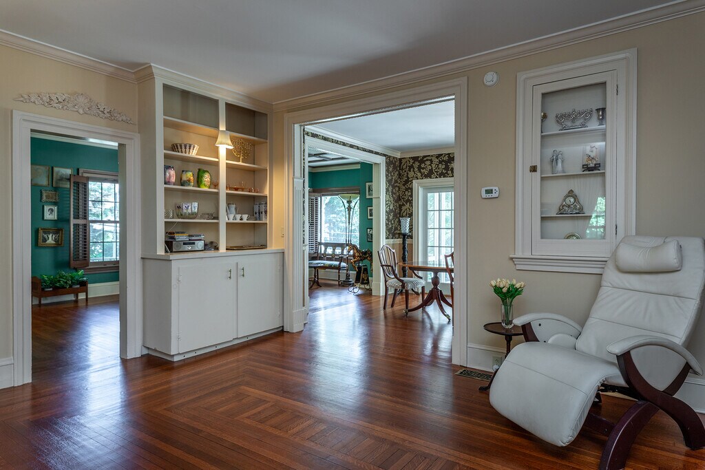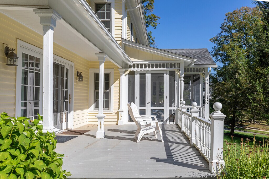 This beautiful Queen Anne Victorian sits prominently above the village of Lakeville on just over an acre. The home has been impeccably updated and maintained with the highest care and quality. The wrap around porch is so welcoming. Inside you enter the front parlor with coffered ceiling, a bay window and lovely stained glass window. The spacious formal dining room has double doors opening to the screened porch, giving you the option to dine al fresco. The living room has a gas fireplace, flanked by built-in shelving and beautiful oak floors run throughout these rooms providing continuity. The kitchen is large and sunny. It offers an eat-in area, walk-in pantry, quartz counters, quality appliances and cabinetry, and beautiful details throughout. Off the kitchen is a powder room and the mudroom with access into the attached 2-car garage. There is also access out to both the driveway and on the other side, the patio. Upstairs is an incredible primary bedroom suite, offering privacy and offers 2 very generous walk-in closets and full bath. Continuing upstairs there is another bedroom with en-suite bath, two more bedrooms, a hall bath and very large laundry room. Walking distance to the village and elementary/middle schools. Available immediately.