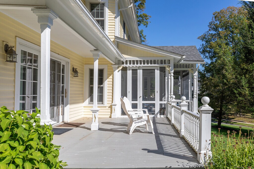 Call for Availability - This beautiful Queen Anne Victorian sits prominently above the village of Lakeville on just over an acre. The home has been impeccably updated and maintained with the highest care and quality. The wrap around porch is so welcoming. Inside you enter the front parlor with coffered ceiling, a bay window and lovely stained glass window. The spacious formal dining room has double doors opening to the screened porch, giving you the option to dine al fresco. The living room has a gas fireplace, flanked by built-in shelving and beautiful oak floors run throughout these rooms providing continuity. The kitchen is large and sunny. It offers an eat-in area, walk-in pantry, quartz counters, quality appliances and cabinetry, and beautiful details throughout. Off the kitchen is a powder room and the mudroom with access into the attached 2-car garage. There is also access out to both the driveway and on the other side, the patio. Upstairs is an incredible primary bedroom suite, offering privacy and offers 2 very generous walk-in closets and full bath. Continuing upstairs there is another bedroom with en-suite bath, two more bedrooms, a hall bath and very large laundry room. Walking distance to the village and elementary/middle schools. Available immediately. MLS# 24137584