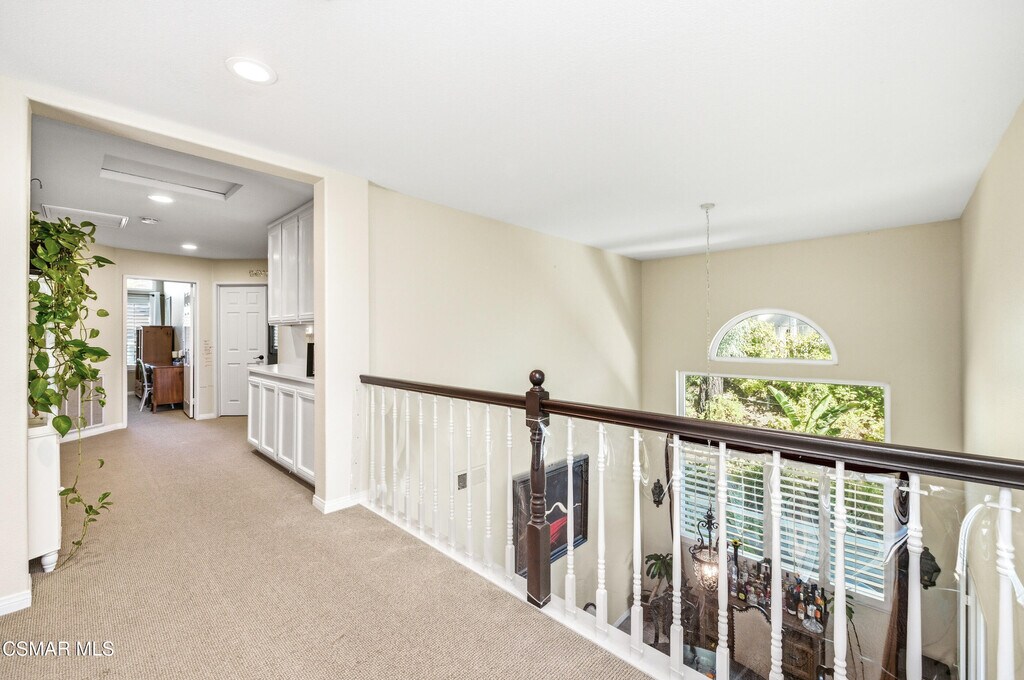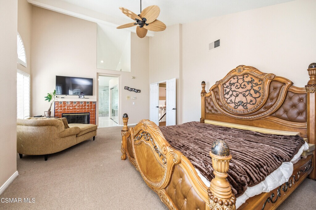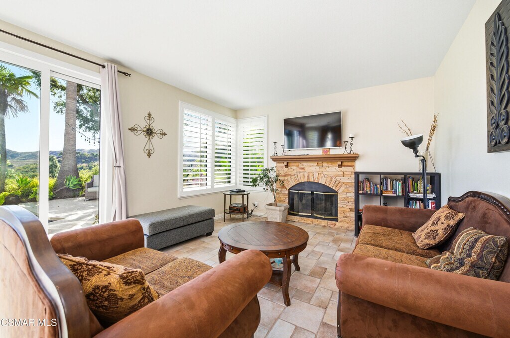 Welcome to this exceptional two-story Westlake Village home offering space, style, and resort-style living. Step inside to soaring ceilings, a grand staircase, and an elegant formal living room with a cozy fireplace. The formal dining room is perfect for gatherings, while the light-filled kitchen features granite countertops, stainless steel appliances, and a charming breakfast nook overlooking the backyard. The adjacent family room opens seamlessly to the outdoor patio and pool area. A convenient downstairs bedroom and full bath make an ideal guest suite or home office, plus a laundry area with direct access to the three-car garage. Upstairs, the spacious primary suite feels like a retreat with high ceilings, a sitting area, abundant closet space, and a luxurious bath with dual vanities, soaking tub, and separate shower. Two additional bedrooms, a full bath, and a large flex room complete the upper level. Outside, enjoy a sparkling pool, relaxing spa, and breathtaking hillside views--perfect for entertaining or unwinding at home. Located in the highly desirable Three Springs neighborhood close to parks, trails, and top-rated schools.