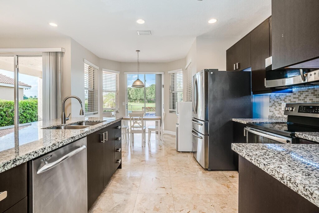 Beautiful two-story home in WESTON HILLS COUNTRY CLUB with breathtaking lake and golf course views. Featuring 5 bedrooms + den and 3.5 bathrooms, marble floors in main areas and hardwood floors in bedrooms. Three bedrooms on the first floor; spacious primary suite and den upstairs with large balcony overlooking the lake and golf course. Fenced 10,288 SF lot with private pool. Kitchen with wood cabinets, granite countertops, and stainless steel appliances. Accordion shutters. Landlord covers lawn, A/C, and pool maintenance. Located near major highways, shopping, dining, the Cleveland Clinic , Sawgrass Mills, 30 minutes from the beaches, and FTL Airport. A-rated schools, . Two golf courses. Club membership not mandatory.