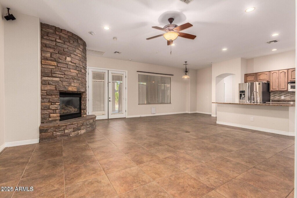 North Phoenix Home with Pool and Solar - Move-In Ready! This beautifully upgraded 4-bedroom,3-bath home is perfectly situated on a corner lot in a highly desirable North Phoenix neighborhood. From the moment you enter,you'll notice the inviting open floor plan and the warmth of a stone-accented fireplace in the family room,creating the ideal setting for relaxing or entertaining. The chef's kitchen is a true showstopper,featuring custom cabinetry,granite slab countertops,a modern tile backsplash,and stainless steel appliances,including double ovensperfect for home cooking or holiday gatherings. Retreat to the spacious primary suite,complete with a walk-in closet and a luxurious bathroom offering a dual-entrance shower Must see