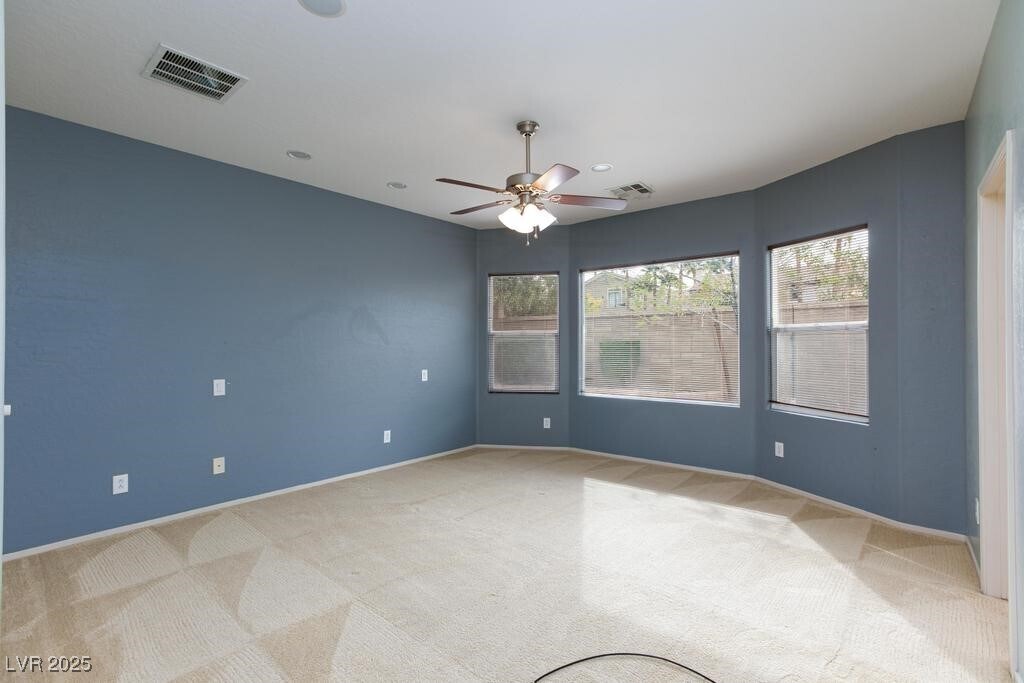 Welcome to this beautifully maintained single-story home located in the desirable Anthem Highlands community in Henderson! This charming 3-bedroom, 2-bathroom residence offers a bright and open floor plan perfect for both relaxing and entertaining. Enjoy a spacious living and dining area that flows seamlessly into a large kitchen featuring solid countertops, ample cabinet space, and a breakfast bar—ideal for casual dining or morning coffee. The layout is thoughtfully designed with the bedrooms situated separately from the main living areas for added privacy. The primary suite includes generous closet space and an en-suite bathroom, while the additional bedrooms are perfect for family, guests, or even a home office. You’ll love the convenience of a dedicated laundry room and the comfort of carpet only in the bedrooms, with easy-to-clean hard flooring in the main areas.This home has been well cared for and is move-in ready.
