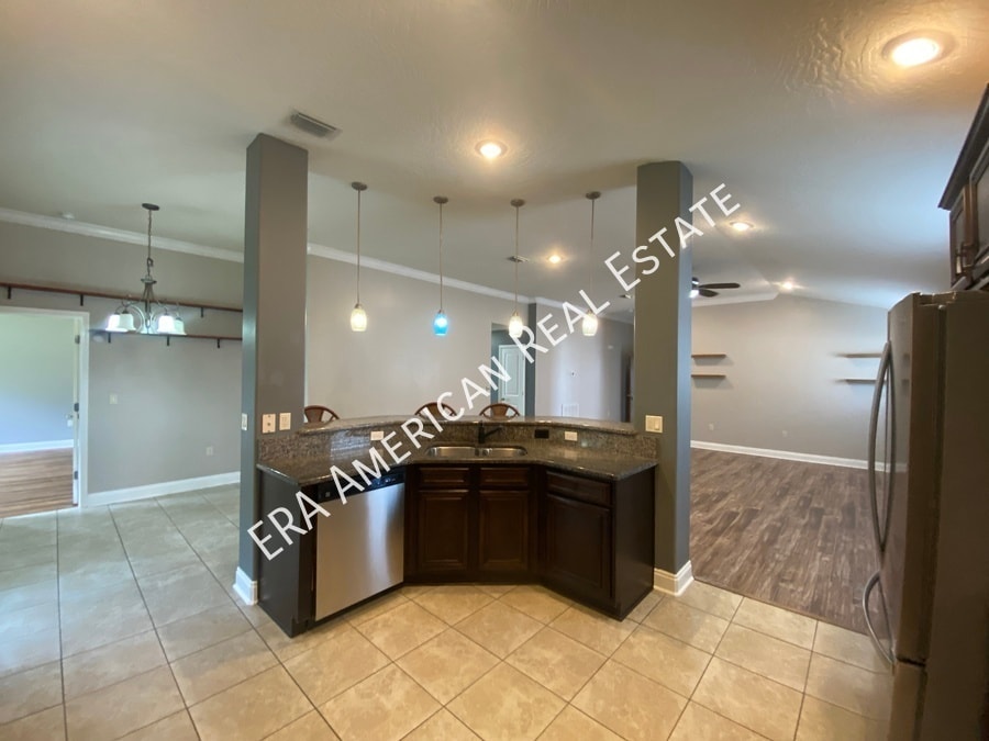 Welcome to 2672 Hartman Court, a stunning home in the Cottages of East River subdivision in Navarre. This beautiful home features 4 spacious bedrooms & 2 full baths, offering 1,738 square feet of living space. Step inside to discover a bright, open layout with luxury vinyl plank flooring in the living areas and bedrooms, and ceramic tile in the kitchen and bathrooms. The large living room is perfect for gatherings and entertaining. The spacious kitchen boasts granite countertops, an abundance of cabinets, & a breakfast bar. Fenced backyard with a covered porch, an ideal spot to enjoy your morning coffee. No smoking. Pets must be approved by owner with an additional $200 security deposit per pet & onetime $100 pet admin fee. All ERA American Real Estate residents are enrolled in the Resident Benefits Package (RBP) for $50/month which includes HVAC air filter delivery (for applicable properties), Credit Building to help boost your credit score with timely rent payments, Liability Insurance, $1M Identity Protection, Utility Concierge Service making utility connection a breeze during your move-in, our best-in-class resident rewards program, and much more! More details upon application. 2 Car Garage Auto Garage Door Opener Cathedral Ceilings Central A/C Central Heat (Electric) Ceramic Tile Flooring City Sewage Covered Patio Disposal Double Vanity Glass Top Stove Laminate Flooring Lawn Pump Master Bath Garden Tub Non Furnished Pets Allowed Smoke Detectors Stove (Electric) Washer/Dryer In Unit Water Heater Electric