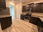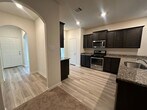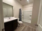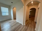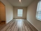 3-bedroom, 2-bath home in Magnolia. The entryway opens to a formal dining room or flex space on the left. The dining area connects to the kitchen, which includes a dishwasher, refrigerator, and microwave. A bar separates the kitchen from the living room, creating an open flow. The primary bedroom is located on the left side of the living room and features an ensuite bathroom with a separate shower, bathtub, and walk-in closet. Two additional bedrooms and a full secondary bathroom are located on the right side of the living room. The home also offers a laundry area, attached garage, and a backyard with patio access from the living room. *Online apps only, please submit all required documents at time of application** **$100,000 Liability to Landlord Insurance Policy Required**