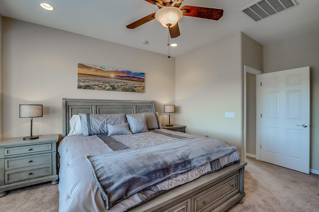 Available Dec 2025 only at $1475/mo with 3 month minimum and quick move in! Beautifully appointed fully FURNISHED rental home in high demand active adult community Sun City Festival. This stylish home features large bedrooms,master w/a king sized bed,2nd bedroom w/queen bed,& den w/twin size futon. Catch your favorite shows on the large flat screen TVs,& relax in the cool desert evenings on the comfy patio while grilling dinner on the included BBQ. This home is located walking distance to the club house & offers stunning mountain views - location could not be better. Tenants welcome to community amenities w/pass fee. Rates vary w/season & length of stay. Requires at least 1 occupant age 55+,no occupants under 18. No Pets. No Smoker. 2026&2027 Jan-April booked. Community features include golf course,recreation center,clubhouse,pool,and workout facilities. Community events and classes. Pickle ball and sports courts. Tenant enjoys accesses to amenities with registration and low pass fee.