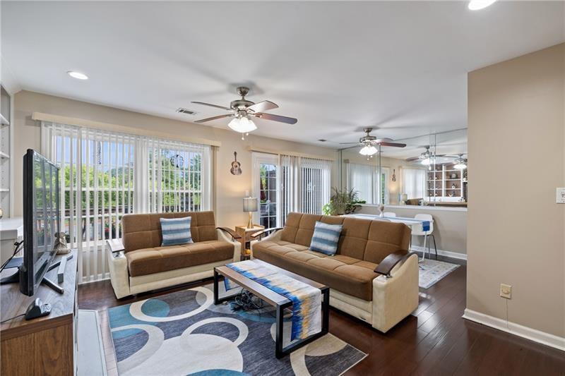 Amazing Location! Don’t miss this lovely,spacious end unit townhome nestled in this enclave community between 1-285 and 1-75. Just minutes to the Braves Stadium,Downtown Smyrna and public transportation. Enter into the main hall with a view of the great room from the charming front porch. The updated kitchen has tons of space with newer finishes. The oversized deck can be accessed from the main living space and overlooks Jonquil park. Upstairs you'll find the spacious primary suite with updated private bath,along with 2 guest rooms and a shared updated bathroom. The fully finished terrace level boasts a large area perfect as a second living area or bedroom along with a full bathroom and spacious patio,making it an ideal situation for a roommate. Two assigned parking spaces directly in front of the unit. The clubhouse and pool will make you feel like you're living at a resort year round. Home is occupied. Showings are by appointment only. Home can be rented furnished or unfurnished.