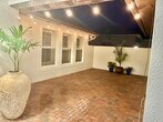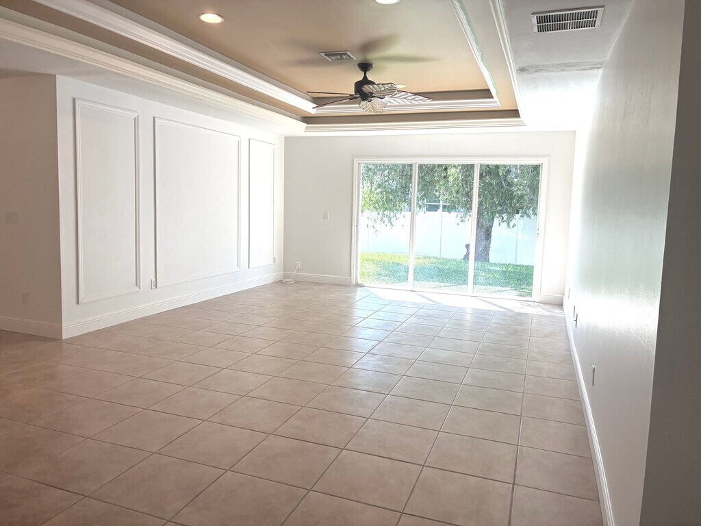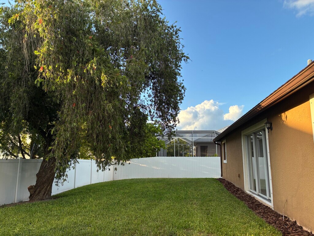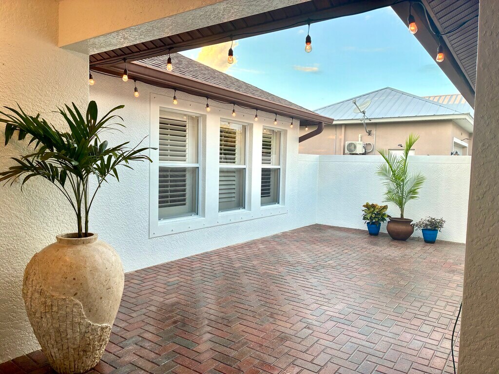 Spacious three bedroom, two bath, two car garage, courtyard home in Bonita Springs with easy access to shopping, the highway and walking distance to the YMCA. This unique courtyard plan includes a great room with the master bedroom on one side of the house and two additional bedrooms on the other side of the home. The front bedroom has it's own exterior door if you would like to also use it as an office, or it could be used as a bedroom since it also shares a door joining it to the rest of the home. Updated with granite counter tops, stainless appliances and a custom back splash, this large kitchen has the wow factor! The main living area is tiled and all of the bedrooms have wood floors . There are plantation shutters throughout the house. The courtyard boasts both a covered section and a large open area for dining and seating areas. The driveway can easily accommodate four cars. The home is just two blocks from the YMCA which has a pool with a splash pad, a gym, 8 pickleball courts, soccer fields and a workout facility. Landscape care is included in rent. Come make this one-of-a-kind home yours. Annual lease with monthly rent of $2700 and $2000 security deposit. Available now. Non-smokers only. A small dog or cat allowed.