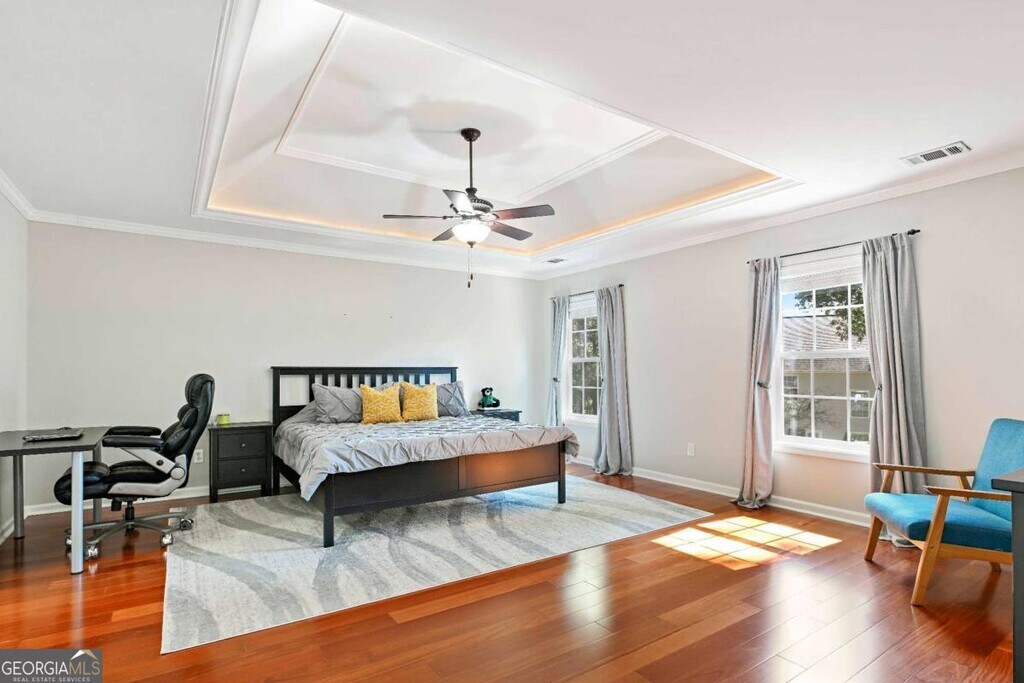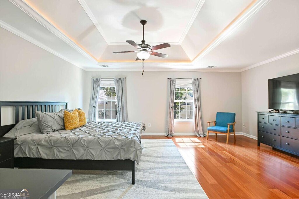 Available for rent or for sale. Welcome to 2675 Huddlestone Way - a beautifully maintained 5-bedroom, 3-bath home in The Ridge at Stoney Point in South Forsyth. Step inside to a bright and welcoming two-story foyer. The main level features a flex room - ideal for a home office or formal living - and a separate dining room. The beautiful kitchen features white cabinetry, quartz countertops, large island, walk-in pantry, and sunny breakfast area overlooking the backyard. The spacious two-story family room features a wall of windows and a cozy fireplace. A guest bedroom and full bath on the main offer flexibility, and the laundry room is conveniently located on the main floor. Upstairs, the spacious primary suite includes double vanities, a separate tub/shower, and two closets. Three additional bedrooms and a full bath complete the upper level. Outside, the fully fenced backyard features a patio and gazebo awning - perfect for relaxing or entertaining. Neighborhood amenities include swim and tennis. Unbeatable location with top-rated schools and easy access to GA-400, Halcyon, Avalon, The Collection, Big Creek Greenway, dining, and shopping. One-month security deposit, credit and background check, and renter's insurance are required. Tenant responsible for utilities.