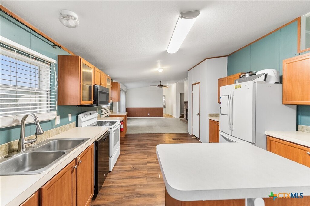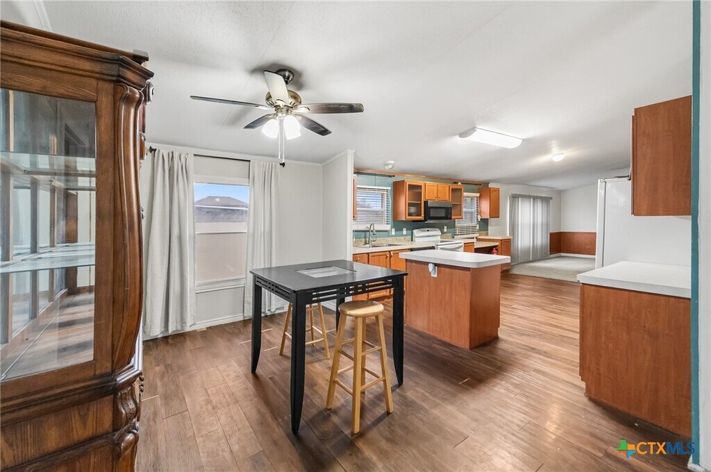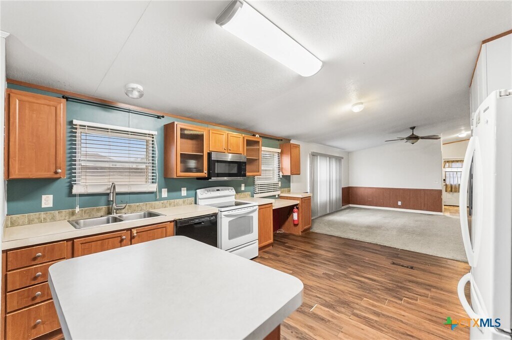 Welcome home to this remarkably spacious 3-bedroom 2-bath mobile home that offers comfort,character,and room to grow. Featuring 2 bonus rooms and 2 separate living areas,this property provides comfort and convenience effortlessly,with easy access to elementary schools,middle schools,and high schools. Additionally,it provides quick access IH 35 and I10. Perfect for a home office,playroom,craft space,or extra guest quarters. Step inside to an inviting open-concept floor plan,where natural light flows throughout the living,dining,and kitchen spaces. One of the living rooms features a cozy wood-burning fireplace,creating the perfect spot to unwind on cool evenings. Outside,you'll find a generously sized yard with plenty of space for outdoor activities,gardening,pets,or entertaining. The property also includes a detached 2-car garage and an additional storage room,giving you all the extra space you need.