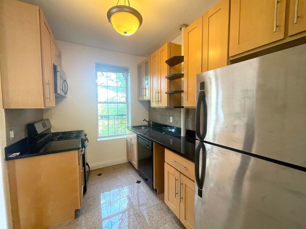 Sun-filled bring spacious one bedroom. Few blocks away from Journal Sq Path station. Heat and Hot water included in rent. Hardwood floors throughout. Well-maintained pre-war building right next to St.Peter's college. Close to NYC transportation, shops and parks and the bus stop is across the street. Washer and Dryer in the building as well as common outdoor patio.