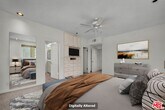 An ideal Sunset Park SM location with easy access to delicious restaurants, Clover Park, and the I-10 freeway. This top floor front facing corner townhome style condo with exterior access to each floor, provides privacy as well as easterly views of trees, the city, and mountains. The living room/dining area has high ceilings, a private balcony off the dining area, built-in bookshelves, and a gas fireplace. Room for an office, or secondary seating area. The kitchen is adjacent to the dining area and living room, creating an excellent entertaining flow for family and friends. The lower level has a spacious primary suite with a walk-in closet and a custom built in entertainment center. Primary bath has dual sinks, an oversized tub/shower. Side by side washer/dryer included. Two parking spaces (not tandem), pool. Freshly painted interior. Newly completed work on the exterior and interior public walkways. No smoking & no pets. Very light and bright. Located in the Grant School District. MLS# 26641645