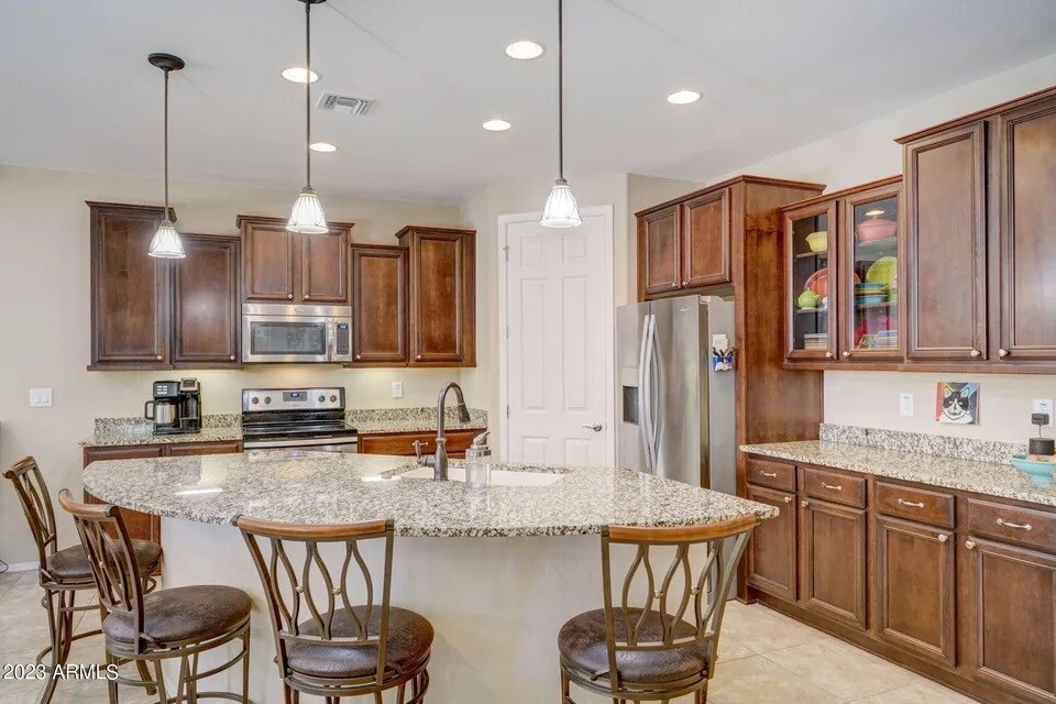 COZY RESORTLIKE STYLE HOME is a seasonal furnished rental in a 55+ community. This model features 2 bedrooms, 2 baths and large open floor plan. Enjoy dine-in living in the spacious great room and savor the modern kitchen with a pantry and granite countertops. Relax on the covered patio, gazebo, firepit or by the built-in BBQ/ Traeger in your lovely backyard oasis while enjoying the AZ weather. Community includes Troon golf course, restaurant and all community amenities such as: 2 HUGE heated pools and spas w/ weights and indoor walking trail, biking/walking paths, clubhouse, tennis, and pickleball. Your vacation dream home awaits! All utilities included. There is a $100 one time charge per renter to get access to all community amenities. Deposit and first month rent due at signing. THIS IS A NO SMOKING RENTAL.