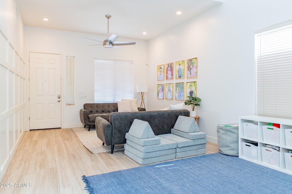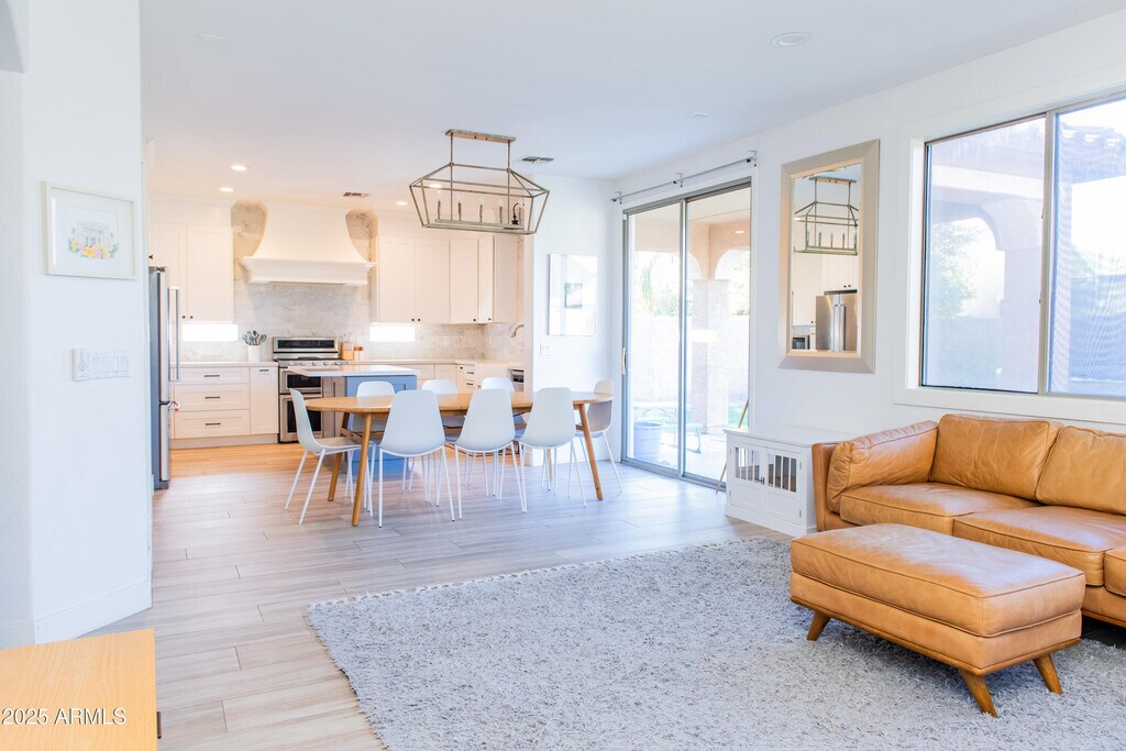 Check out this beautiful updated home in a prime location in Gilbert! Just minutes from San Tan Village and the 202 freeway. This 5 bedroom,3 full bathroom home located in the Vincenz Community is close to many local schools. Enjoy elegant fixtures,granite countertops,updated flooring,and fresh interior paint. The main level features a guest bedroom and custom full bathroomideal for visitors or a home office. Upstairs,you'll find the primary suite along with 3 additional bedrooms. The backyard features low-maintenance turf. Come take a look at this amazing home!