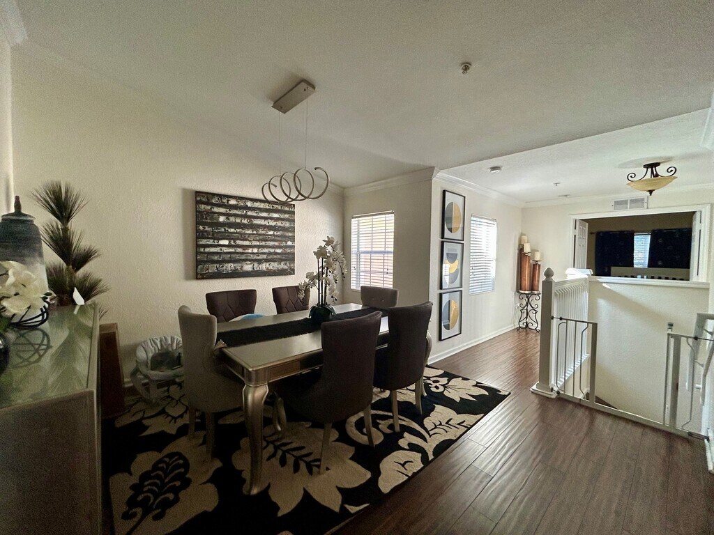 Beautifully updated split floor plan townhome in Metrowest. This 3 bedroom 2 baths with a one-car garage features a large screened balcony, vaulted ceiling, wood flooring, updated large kitchen with eat-in space, two bedrooms with a hall bath on one side and primary suite on the other side of the unit. The gated community of Stonebridge Commons is located in the heart of Metrowest. The community features a beautiful clubhouse, pool, fitness center, meeting facility and full kitchen.