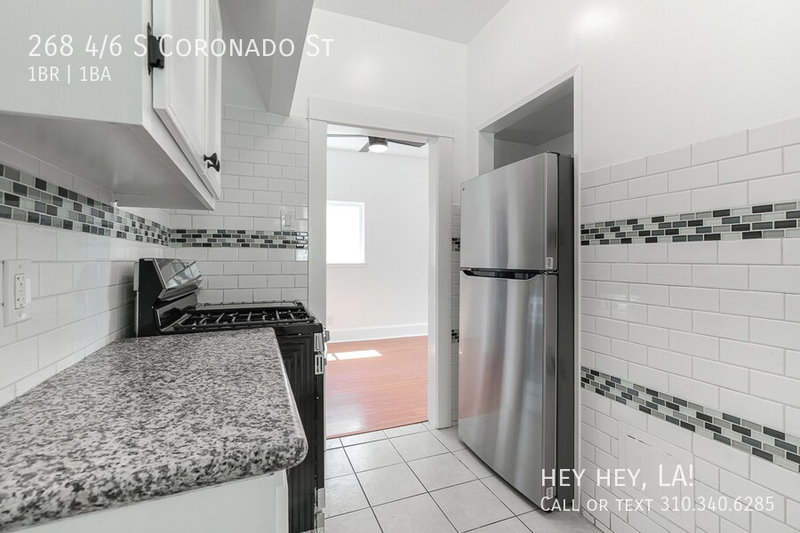 Hillside Spanish One-Bedroom Apartment Home | Top Floor Unit | Stunning Views | Dedicated Office| Historic Filipinotown Echo Park and Koreatown Adjacent Welcome to CASA CORONADO! This gated hillside community offers serene living and breathtaking city views. The one-bedroom apartment plus office is on the top floor of a Spanish garden style apartment, providing privacy and tranquility. As you come up your private wide staircase with stylish carpet runner you enter into a large living room with amazing views of the Koreatown skyline. A new air conditioning unit is located high on the wall as to also provide maximum options for laying out your living room furniture below. The living room is connected to your own private office with a built in desk, and original shelves for all of your storage needs, there is also a nice window to let in lots of natural light into your office space. As you enter the kitchen, you will notice the brand new stainless steel kitchen sink with no divider and gooseneck faucet situated below a nice kitchen window. The home includes a new stainless steel dishwasher, refrigerator with an ice maker in the freezer, and a gas stove. There is an abundance of inset cabinetry, complete with new hardware and granite countertops that give the kitchen an abundance of storage and practicality. There is also a stacked washer and dryer unit tucked away in the laundry room just off the kitchen. From the living room you will see the large bathroom has received modern updates featuring a new vanity with storage space plus a with brushed nickel faucet, stylish light fixtures, large mirror with medicine cabinet, and subway tiled shower wall with a soaking bathtub below. The large bedroom will fit a queen sized bed plus extra room for tons of possibilities just waiting for someone to make this room their own restful space. The bedroom features a large closet, wall mounted a/c and heat unit, a sleek modern ceiling fan and two large windows with more city views. CASA CORONADO Community also has two large patio areas in the front that are private for tenant usage. These patios situated on the front hillside have great views, shade and beautiful foliage that add to this beautiful hillside garden 1920s garden apartment. An interesting tidbit about the property is that it was the residence of famous LA author and poet Charles Bukowski. So the property has a rich history of housing creatives. Lastly, the owner is offering one more BONUS. His maintenance team will assist your move in from street level to the apartment as a courtesy! It is precisely this level of thoughtfulness and attention to detail that makes us so excited to offer you at Casa Coronado! An incredible central location with easy access to downtown, Silver Lake, Echo Park and Koreatown also allows for easy commutes across town in every direction by way of the 101, 110, 10 and 2 Highways. Relocating? Not able to make it to an in person tour? Contact us directly for a virtual tour. Minimum one year lease. One month security deposit. Pets will be considered on a case by case basis. First months rent plus all applicable deposits due at lease signing within 48 hours of approval. Owner pays for water, sewer. Tenant pays for all remaining utilities including electric, gas, trash and optional services such as cable and internet as well as off-street parking rental. Off-Street Parking can be rented from a nearby parking lot for $100/mo. Renter’s insurance required. No risk to apply. $40 application fee is only due after the owner has reviewed your application and has chosen your application to move forward with. Owner looking for tenants that make 3x the rent amount, good credit and solid rental and personal references. Hayden Adler, DRE 02121076 hey hey, LA! | Compass