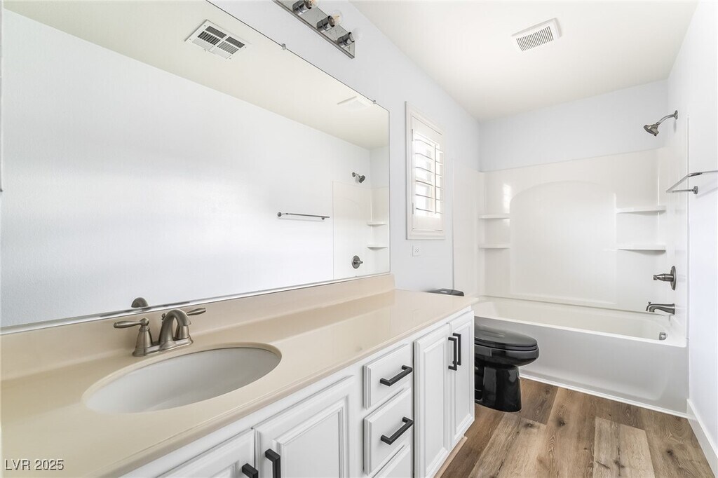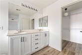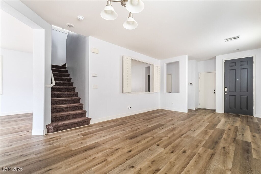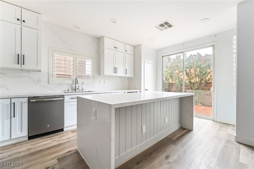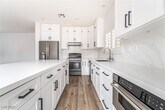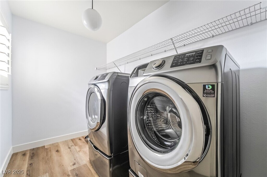 Beautifully updated 5 bed, 3.5 bath home with a bright, modern interior and functional layout. The remodeled kitchen features white shaker cabinets, quartz counters, stainless steel appliances, a large island, and a full slab backsplash. The open downstairs includes new wide-plank flooring, plantation shutters, upgraded lighting, and a convenient downstairs bedroom with adjacent bath. Upstairs offers a spacious loft, oversized primary suite with walk-in closet, dual sinks, separate tub and shower, plus three additional bedrooms and an updated full bath. Laundry room with washer/dryer included. Fresh interior paint, modern hardware, and move-in-ready finishes throughout. Low-maintenance landscaping and a 2-car garage complete this beautiful home. Perfect blend of comfort, style, and space!