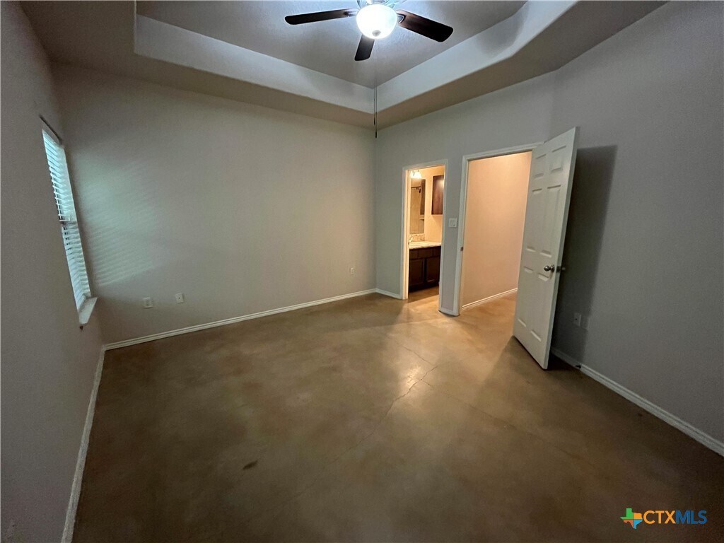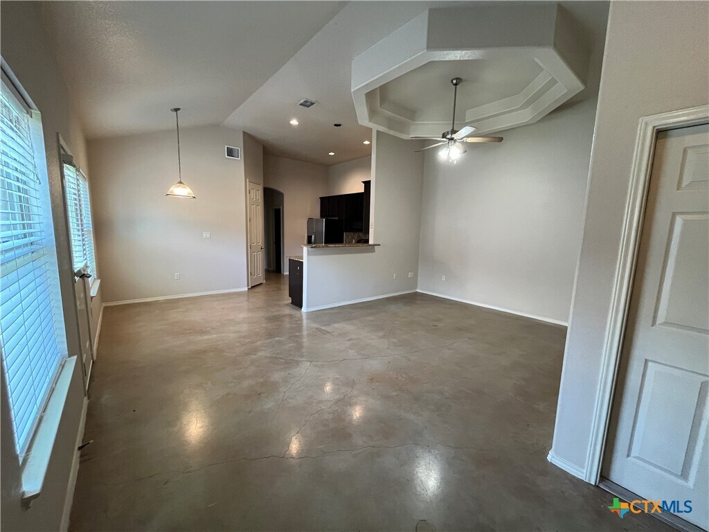 Indulge in this charming 3 bed,2 bath duplex nestled in a quiet neighborhood with high vaulted ceilings and sleek stained concrete floors throughout. The kitchen offers ample cabinet space,while the garage hosts washer/dryer connections. Step onto the covered patio from the master bedroom,and enjoy the fenced backyard. With ceiling fans,a one-car garage,and a sprinkler system,comfort and convenience await in this delightful abode