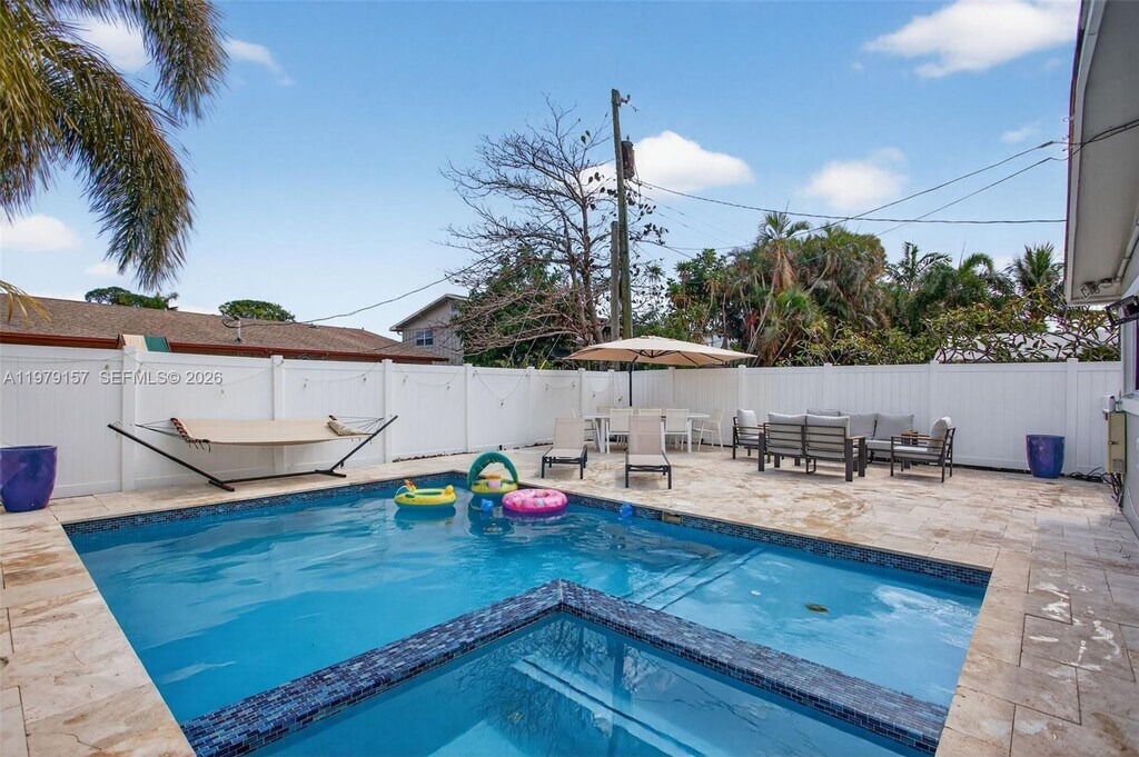 Come see this beautifully furnished, 3 bedroom split, 2 bath home on a large, fenced-in corner lot with a circular driveway and covered carport. Light and bright with an open design connecting the modern kitchen, dining, and family room. The backyard is an oasis featuring a sparkling in-ground heated pool and spa. Located one block west of Federal Highway in Deerfield Beach, close to Starbucks and shopping, and just 10 minutes to the beach. Available for seasonal rental with possibility to extend. Call today for a private showing! MLS # A11979157