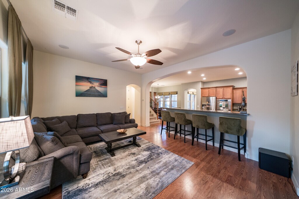 Fully furnished & Professionally Cleaned! Newer Carpet - ideal Home for short or long term - BEST LOCATION in Gilbert!! Less than 1.5 mi from San Tan Village Mall,Loop 202 and just a handful of houses away from HUGE Community Park!! Over 4400 SF Newer,Spacious Home. INCREDIBLY Stocked Kitchen,5 Bedrooms,Family Room,TWO Lofts. 2 Master Suites - Both Split with Walk In Closets & Private Bathrooms. 1 Downstairs Bedroom right next to Full Size Bathroom. 2 Lofts overflowing with Games incl Double Indoor Basketball Hoop,Foosball Table,Relaxing Leather Sleeper/Loungers + more!! Billiards Room Downstairs. Relaxing Heated Pool with outdoor Bar,Fridge,TV and BBQ area. Freestanding Firepit and Covered Patio with artificial turf. Indoor Basketball,2 Xbox Consoles,Board Games,Swimming Toys+
