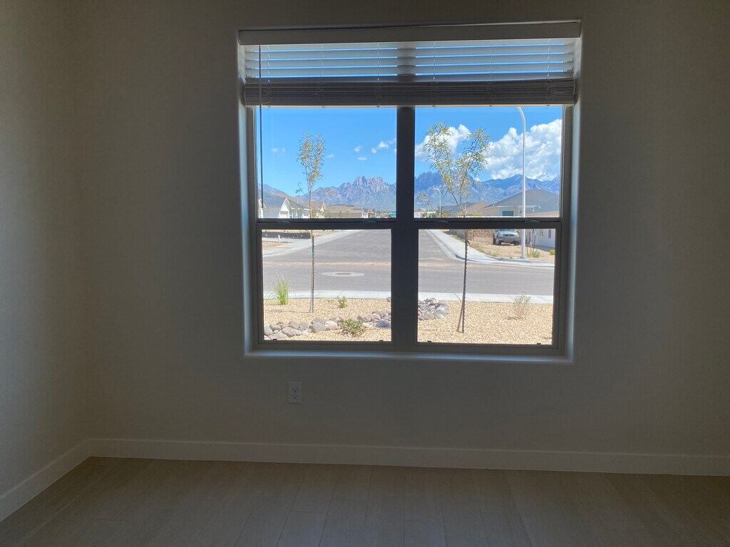Amazing brand new single-story home in a quiet Sonoma Ranch neighborhood with 3 bedrooms, 2 bathrooms plus a flex room (1,990 sq. ft, all tiled), and a 2-car garage. Brand new washer and dryer in the separate laundry room are included with property. Brand new appliances including: wall mounted microwave, wall mounted oven, gas range, dishwasher, and refrigerator. Kitchen is open to the dining/living room, and has two full-sized pantry storage areas. Master bedroom has ensuite bathroom, with fully-tiled shower and a spacious closet. Internet modem/router are included with property. Home has central heating and cooling, with energy efficient windows and insulation. No backyard neighbors, and spectacular Organ mountain views. No Utilities included. Is pet friendly. Date Available: Oct 1st 2025. $2,350/month rent. $2,350 security deposit required. Please submit the form on this page or contact Natalie Flores at to learn more. This property is managed by a responsible landlord using Avail landlord software.