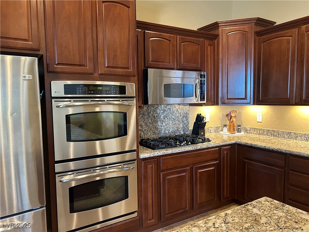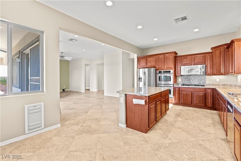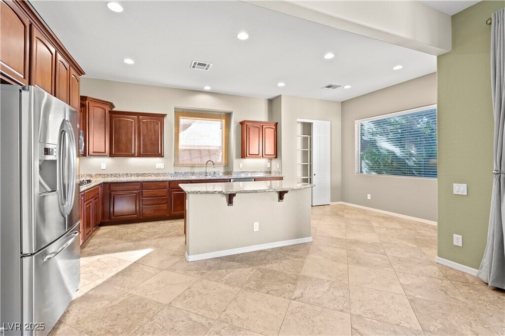 Beautiful 3-bedroom home located in the heart of Anthem. The primary suite and two additional bedrooms are situated in the main house. The inviting family room features a cozy fireplace, while the kitchen is equipped with stainless steel appliances, an island with breakfast bar seating, and a breakfast nook offering ample dining space. Step outside to enjoy a sparkling solar-heated pool with a soothing rock waterfall and a covered patio—perfect for relaxing or entertaining.