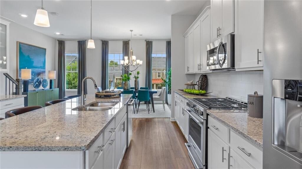 Hurry! Recently build luxurious,modern townhome in the heart of Historic Norcross. New appliances. Great location. Close to shops and restaurants,walkable to Lillian Park,minutes to I85. Open floor plan with kitchen,living and patio view with modern finishes. Elegant 3 bedrooms 3.5 baths,Featuring King sized two masters,Spacious bed rooms and attached full bath on all bedrooms. Beautiful white cabinets,wood stairs,stainless steel appliances,granite counter tops with nice backsplash,Granite Island with nice patio view,Tile in all baths. 2 car rear entry garage. *note: some of the pictures are model only