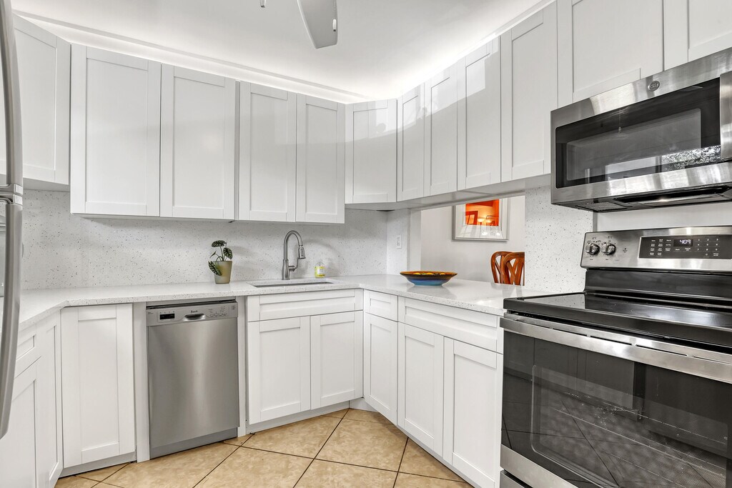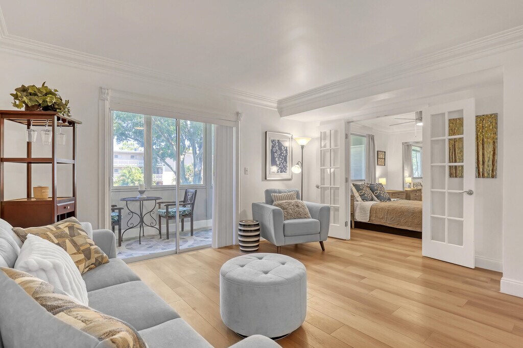 Available for 3 month minimum.Beautifully renovated and thoughtfully designed, this elegant condo in Lake Clarke Gardens offers modern comfort and charm. Enjoy brand new wood floors, a fully remodeled kitchen with never-used stainless steel appliances, quartz countertops, and custom cabinetry. The updated bathroom features new fixtures, and the master bedroom includes a spacious walk-in closet with built-in storage. A French door leads into the second bedroom, perfect as a guest room or home office. The enclosed balcony features a stunning newly tiled stone floor--an ideal space for morning coffee, a glass of wine, or an intimate dinner for two. With new ceiling fans, an alarm system, and sophisticated details throughout, this move-in ready unit is a true gem.