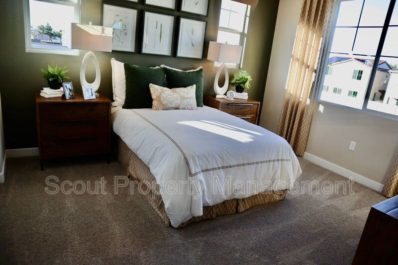 Brand New Construction! Stunning 4 Bedroom, 2.5 Bath Home with Solar, centrally located in downtown Menifee with Exceptional Community Amenities. Welcome to this beautifully crafted brand-new 4 bedroom, 2.5 bath home offering 1,650 sq. ft. of thoughtfully designed living space. Located in a highly desirable new community, this property blends modern comfort, convenience, and style. The main level features an open-concept layout with abundant natural light. The upgraded kitchen boasts quartz countertops, a center island, stainless-steel appliances including refrigerator, and generous cabinet storage—perfect for cooking, entertaining, and everyday living. The kitchen flows seamlessly into the dining and living areas, creating a warm and functional space. Upstairs, you’ll find four well-sized bedrooms, including a comfortable primary suite with its own private bath and walk-in closet. All bathrooms showcase modern finishes and clean, contemporary design. Energy efficiency is a standout feature—this home includes solar panels, helping reduce monthly utility costs. This home is one of the few in the community that offers a large, private backyard with no rear neighbors - just a serene nature view. A truly peaceful and rare find. A 2-car attached garage adds convenient parking and extra storage. Residents have access to an impressive clubhouse featuring a designated remote work office, fitness center, resort-style pool, spa, outdoor fireplace, fire pit, and tot lot, offering a truly elevated lifestyle. Located close to shopping, dining, and the 15 and 215 freeways, this home provides excellent access for commuters while still being tucked within a peaceful, newly developed neighborhood. This is an exceptional opportunity to lease a brand-new, energy-efficient home with high-end finishes and premier community amenities. Available now! *Furnished Images are model home photos shown for visual reference. If you have any questions regarding this rental home please email HELLO at MYSCOUTPM dot COM Due to the volume of calls we receive this is the fastest way to receive a response from our team. Please visit TENANT TURNER dot COM and search for the property address to move through our screening process to confirm qualifications. Upon successful screening you can schedule a time to view the property. Please be advised you need to meet the following criteria to be considered for tenancy: 1. Combined gross household income of 2.5 X's the rent. 2. Credit Score of at least 650 or higher 3. Complete one application per adult occupant. Applications that are missing documentation will not be considered 4. Make sure you qualify for the pet policy for the property for which you are applying 5. Applicants that are currently in bankruptcy that has not been discharged yet, or have an open tax lien for which you are not in a payment arrangement, will not be considered for tenancy (nor will an eviction within the last ten years). To apply, please follow this link to our Applications Team at FinDigs: We do not accept applications from Zillow or other third-party Sites. Applications must be submitted via our Website only to be considered. Amenities: solar, in unit laundry, Community Spa, Community Fitness Center, Attached 2 Car Garage, Community Clubhouse, community pool, office space