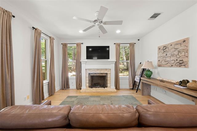 Charming home on one acre with a stunning renovated kitchen! Nestled on a peaceful one acre lot surrounded by trees, this beautifully updated home offers the perfect blend of modern comfort and timeless charm. Step inside to discover a newly renovated kitchen (2023) featuring custom cabinetry, sleek quartz countertops, high end finishes including Jen Air appliances and cabinet front built in refrigerator. Ideal for both everyday living and entertaining. Throughout the home, custom touches add warmth and character, from built-in cabinetry to detailed trim work, creating a truly unique and inviting space. The spacious front porch is a dream setting for your morning coffee, offering tranquil views and the peaceful sounds of nature. Outside, enjoy the beauty and privacy of the lush, tree-filled yard, perfect for gardening, outdoor play or simply relaxing under the shad. Whether you are looking for space, style or serenity, this property has it all. Just 5 min South from Hwy. 20 for easy commute access and this country setting is also just 5-10 min from all of the conveniences of shopping and dining in the charming town of Weatherford! This property is located among similar small ranchettes of beautiful construction styles, but is also not subject to any HOA restrictions. You can enjoy gardening, have a chicken coop or bring a horse to stable in back amongst the shade trees! Existing chicken coop and play structure are excluded and will be moved.