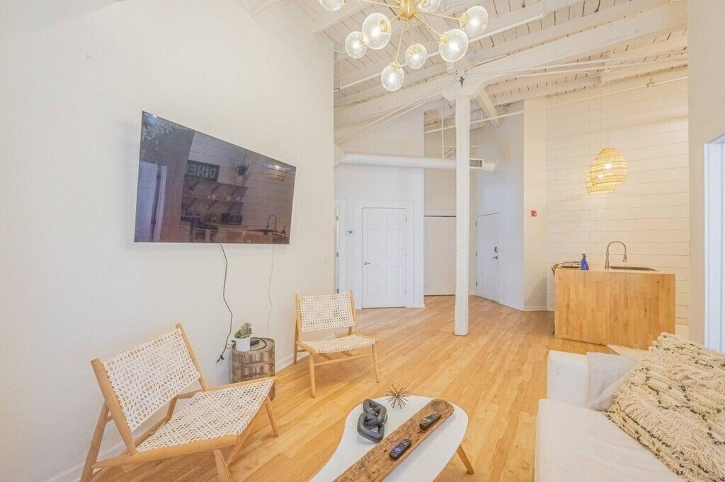 Welcome to The Dawg Den Downtown, feel at home in this stylish and cozy retreat in the heart of Athens. Step inside to find an open, sun-filled living space designed with neutral tones and modern accents. The fully equipped kitchen features sleek stainless steel appliances and a convenient bar area with three barstools. The modern bathroom features an elegant design, complete with a refreshing shower, complimentary shampoo and body wash, fresh towels, and a hairdryer. Pets are welcome on the premises, and a pet fee of $125 applies. Inform us in advance to secure authorization for bringing a pet, and clean up after your pet, including waste, or additional charges may apply. Located right in downtown Athens, you'll be steps from restaurants, shops, and nightlife. While most destinations are walkable, rideshare options like Uber and Lyft are readily available. For grocery trips or exploring other parts of Athens, having a car is recommended. There is no private parking. Guests may park in any nearby metered spot, parking lot, or parking garage, all within walking distance. Parking is paid and subject to availability. The building access code and door code will be sent the day before (or morning of) your arrival. [SI]