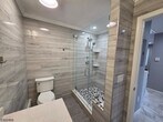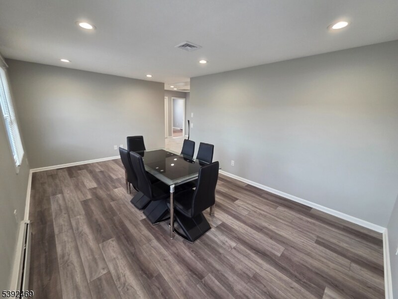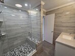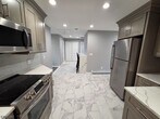 Beautifully renovated spacious 2 bedroom 2 full bath wmd floor apartment with full on suite in primary bedroom along with additional full bath off kitchen and adjacent to 2nd bedroom. Find Quartz counter tops stainless steel appliances and laundry hookups in this turn key unit. New floors bathrooms and back deck make this a great space. A large living room and separate and equally as large dining room allow plenty of elbow room. Heating included in rent. NO PETS.