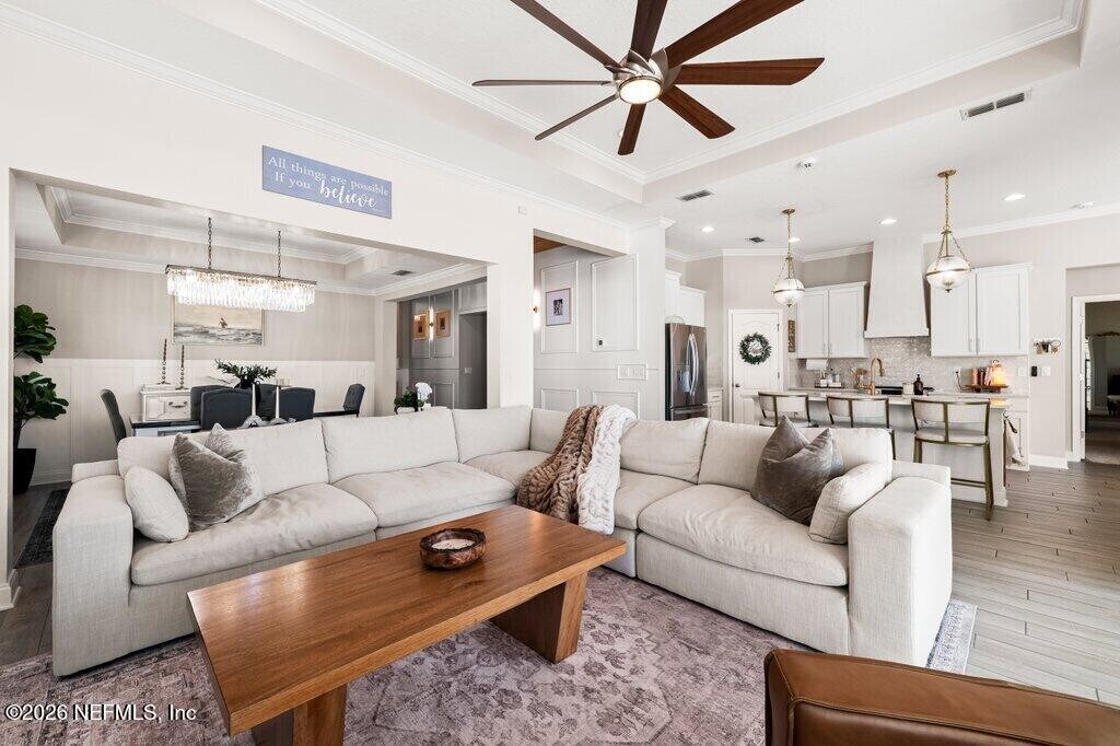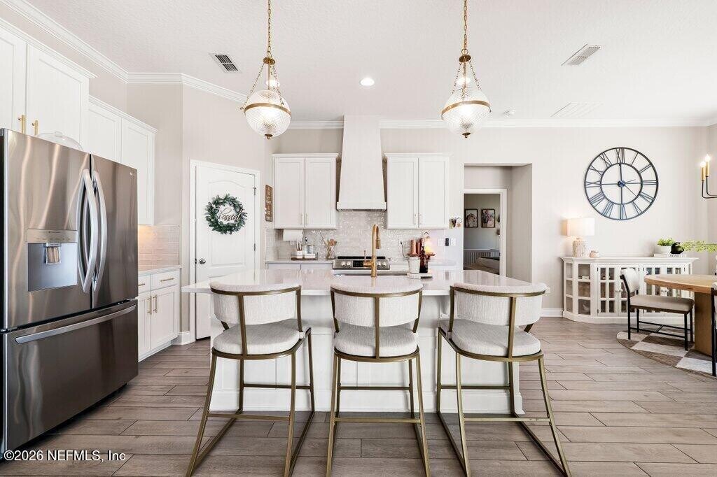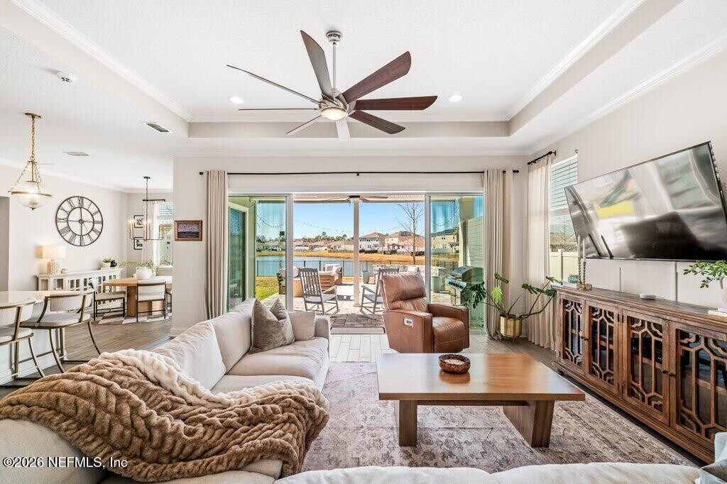 Stunning Rental Available April 6th in Cross Creek! Experience elevated living in this stunning 4-bedroom,3.5-bath home PLUS a private mother-in-law suite complete with its own kitchenette featuring a full-size refrigerator,sink,and cabinetry,ideal for multi-generational living or hosting guests in style. With over $35,000 in upgrades,this home blends high-end design with everyday functionality. Enjoy resort-style amenities including two pools,pickleball courts,volleyball court,dog park,fitness center,and boat & RV storage,all within the community! Arrive to a fresh,inviting exterior and spacious 3-car garage with epoxy floors. Inside,a grand entry welcomes you with striking custom light fixtures and tongue-and-groove ceilings. The main living areas showcase wood-look tile flooring,soaring 10' and 12' ceilings,and a stunning open-concept layout designed for entertaining. Elegant custom box trim molding lines the hallway,accented by gold wall sconces that create a warm,upscale ambiance. The living room features expansive double sliders leading to an extended paver patio complete with a fire pit,seating area,and breathtaking pond views with unforgettable sunsets. The designer kitchen is a true showpiece,quartz countertops,gold fixtures and hardware,custom backsplash,new plaster hood vent,and a custom pantry featuring bold green cabinetry and a built-in white and gold microwave. Thoughtful touches like hidden under-cabinet outlets make it easy to keep appliances tucked away and devices charged. The owner's suite offers picturesque water views and a spa-inspired bath with an oversized walk-in shower,updated gold mirrors and sconces,and fresh paint. The custom closet boasts over $5,000 in upgraded cabinetry,complete with built-in drawers,abundant shoe storage,and even a jewelry tray. Jack-and-Jill bedrooms include custom closets,dual vanity sinks,and a private toilet and tub/shower area. ALL LAWN MAINTENANCE INCLUDED! This home truly has it all,luxury finishes,thoughtful upgrades,and resort-style living. Schedule your private tour today! MLS# 2132951