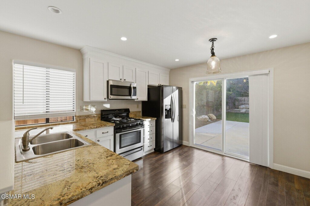 Beautifully updated and move-in ready, this 4 bedroom, 2.5 bath home is ideally situated at the end of a quiet cul-de-sac in the highly desirable Deer Springs community of Calabasas. Positioned on a corner lot of nearly one-third acre with no immediate neighbor on one side, the property offers exceptional privacy and space. Located within the award-winning Las Virgenes School District, one of the most sought-after in the region.Spanning approximately 1,866 sq ft, the home offers a bright and inviting layout with soaring vaulted ceilings in the formal living room and separate family w/ decorative brick fireplace and dining rooms designed for comfortable everyday living and entertaining. The kitchen features stainless steel appliances and granite countertops, which continue throughout the bathrooms for a cohesive and upgraded feel.Beautiful wood-like flooring throughout the downstairs, brand new plush carpeting upstairs, custom 2-inch faux wood blinds throughout, and fresh interior and exterior paint. A dedicated laundry room with hookups and an attached direct access two-car garage add to the home's comfort.The outdoor space is equally inviting, featuring a fully fenced, private and tastefully landscaped enclosed yard on an expansive nearly 15,000 sq ft lot. Fresh hardscape includes newly poured and widened driveway and walkway.Ideally located just minutes from Malibu, Malibu Creek State Park, Erewhon Market, shopping, dining, and scenic hiking trails.Available now for immediate move-in.