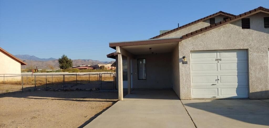 For information please call the office directly at . Contact though 3rd party site will not be responded to. Located in Walnut Creek just off Oatman Highway. This duplex home features 3 bedrooms and 2 bathrooms. A single car garage with washer and dryer hookups. Property is pet friendly. Additional deposits will apply.