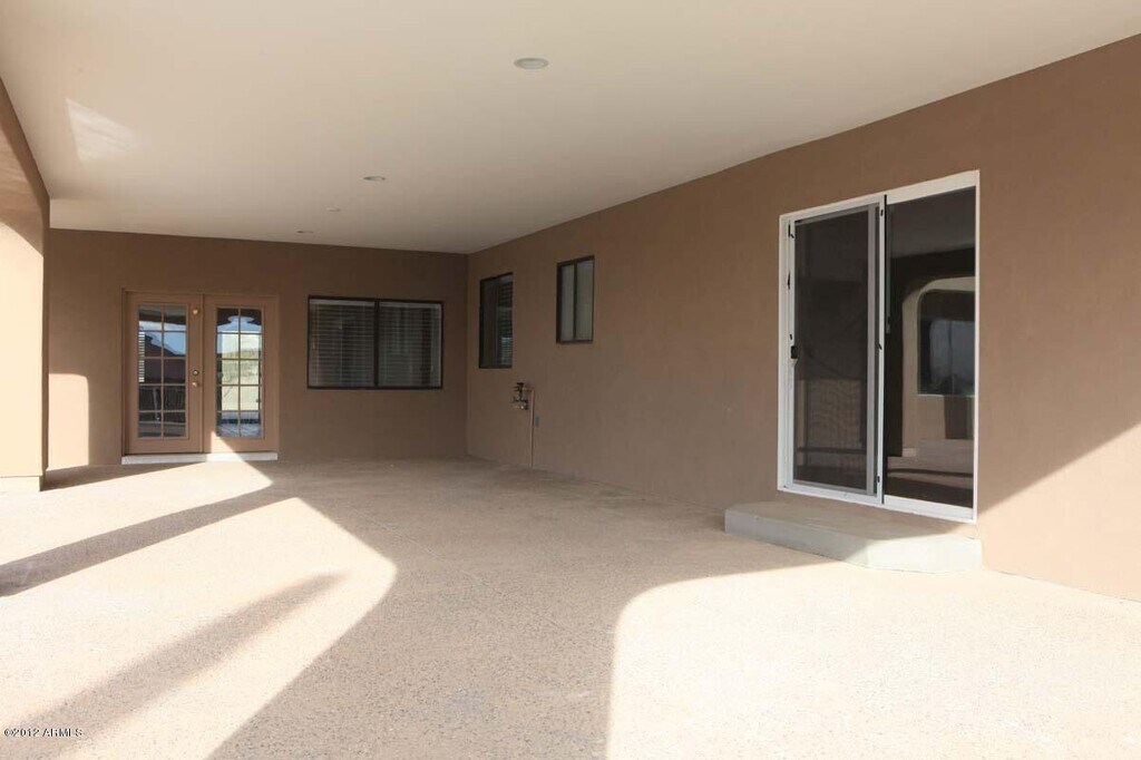 ATTACHED GUEST QUARTERS PLUS 3 HORSE STABLE & ARENA. The main portion of the home provides 4 bdrms and 2 baths,granite counters,stainless appliances,refrigerator,washer,dryer. Solid surface flooring thru-out home. A large family room leads to wrap around patio,where watching beautiful AZ sunsets winds down the day. Pool area is fenced from patio. Joint Family room separates the 2 bd,1 ba with step in shower in guest house. The double gate or the door from the family room offers access to extended slab area and 2 car garage. Lots of fenced parking for other vehicles and toys. Fenced Horse area on property with stable offers an easy ride into the serene desert.