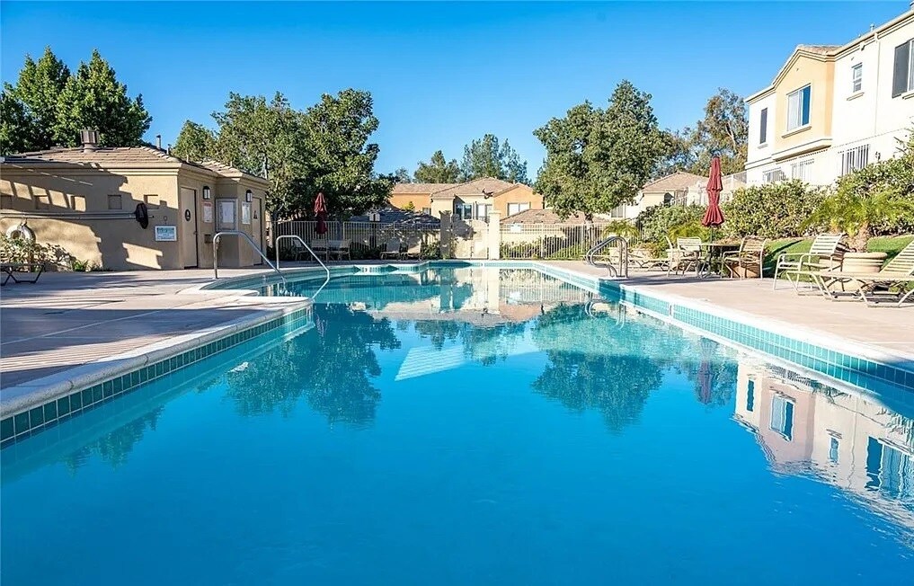 Charming 1 Bedroom, 1 Bathroom Townhouse in Valencia, remodeled new flooring, new paint, great floor plan with open kitchen, dining area with fireplace, attached garage, dual closets and dual sinks in master bathroom with balcony, close to award-winning schools, park, shopping center, restaurants, shops, gym, markets and much more! Community offers plenty of guest parking, pool and more.