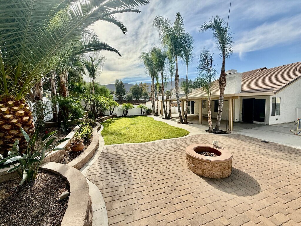 Welcome to this beautifully maintained single-story home in the highly desirable Horsethief Canyon community. Featuring three bedrooms and two bathrooms, this property offers both comfort and functionality in an ideal layout. Step inside to a bright and inviting living room with ample space for entertaining, seamlessly connecting to the open-concept kitchen. The kitchen flows into a separate family room, where large windows provide views of a gorgeous backyard. All bedrooms are located on opposite side of the home for additional privacy. The primary suite includes a walk-in closet and additional bathroom with dual sinks, bathtub/shower combo, perfect for unwinding after a long day. This home also features a three-car garage with lots of storage, all set on a quiet cul-de-sac. The oversized lot offers endless possibilities—entertain guests by the outdoor fireplace, relax under the shade of towering palm trees with a hammock, or take advantage of the usable space with RV parking. Gardener included with rent. Access to many community amenities, you can enjoy the clubhouse, basketball and tennis courts, a lap pool, gym, sauna, barbecue area, outdoor cooking, picnic spots, and a dog park.