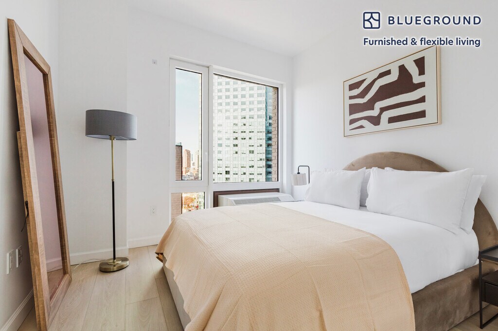 Discover the best of New York, with this one bedroom apartment in Long Island City. It’ll be easy to simply show up and start living in this furnished apartment with its fully equipped kitchen, living room, and our dedicated, on-the-ground support. (ID #NYC2181) The advertised rate of $2,670/month is the lowest available price, based on a 1 month(s) and 2 day(s) stay with a move-in date of January 2, 2026. If you’re looking for a 1-year stay, the rate is $4,700/month. Rates vary depending on the duration of stay, season, and other parameters. For exact pricing and additional pricing components, please visit our website and enter your desired move-in and move-out dates. The rate is applicable when billed upfront; it can be higher if billed in multiple payments. Brokers are welcome to reach out. Were you looking for an unfurnished lease? Try Blueground instead and upgrade from unfurnished to furnished living: - Furnished at rates comparable to unfurnished - No setup or furniture costs - save thousands - Move-in ready - save time, just bring your suitcase Designed with you in mind Gorgeous furniture, fully equipped kitchen, smart TV, and a premium wireless speaker are just a few of the amenities you’ll find inside this one bedroom apartment. Ideally located in New York, you’ll find a lot to love outside as well. When you’re ready to relax, you’ll be happy to discover every Blueground bedroom comes with superior quality mattresses, luxury linens, and cozy towels. We handle everything so you can simply show up and start living. Sleeping arrangements Queen Bed, 63in/160cm Amenities Building amenities unique to this one bedroom apartment include an on-site: - Doorman - Dryer in building - Elevator - Washing machine in building - Lounge - Pets allowed Arrival and ongoing support The entire apartment is yours to enjoy! Throughout your stay, you’ll have access to our Client Experience team through the Blueground App. You can schedule additional cleanings, submit maintenance requests, and view our neighborhood recommendations with just a few taps. We’ll share all details upon confirmation of your stay. Ideally Located This furnished apartment is located in Long Island City, a neighborhood with amazing East River views. Nowadays, the area has become one of the best downtown Manhattan alternatives. Here, locals can enjoy a mix of activities from shopping on Jackson Avenue to indoor arts entertainment at MoMA PS1. Long Island City is also filled with modern public green spaces ideal for a stroll or jog. Grand Central Station is only a 20-minute subway ride away. Other things to note Building amenities may have an extra cost. This Blueground apartment has flexible lease options, allowing you to book it for one month, a year, or more. Pets are welcome, though weight limits and breed restrictions apply and may incur fees. Brokes CYOF. We take great pride in ensuring every photo displayed is shot in our own units with our actual furnishings. That said, we regularly refresh our decor and furniture arrangement, which may differ from what’s pictured. [GO]