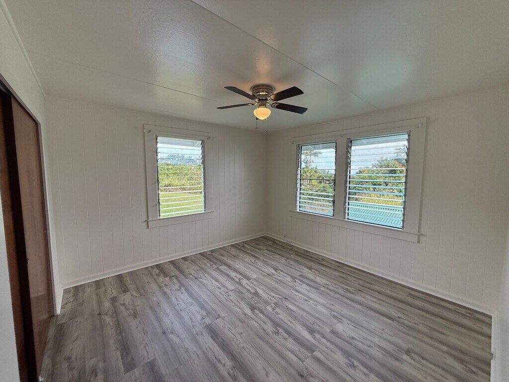 This beautifully renovated home contains brand new luxury vinyl plank flooring, new ceiling fans in the living room and bedrooms, freshly painted walls throughout, and new bathroom vanities. The home is owned by and connected to the Papaikou Hongwanji, so prospective tenants should be aware that the mission does hold services and hosts activities in the Temple. At the same time, it feels both private and quiet. The shared laundry room is downstairs with a washer and dryer included. Electric, water and sewer are included in the rent. This is a no pet property. This property does not accept County Housing. Directions: From Highway 11, head North out of Hilo. In Papaikou, turn Right at the "Scenic Drive" sign and then an immediate right into the Hongwanji Parking lot, house located between church and outbuildings. Do not access the property without the property manager. The drive-by is intended to help the applicant determine the property is situated in the desired location with acceptable surroundings/neighborhood. Drive by only. Do not access property without being accompanied by the Property Manager. The drive-by is intended to help the applicant determine the property is situated in the desired location with acceptable surroundings/neighborhood. Showings are scheduled for approved applicants - after the drive-by, if interest prevails, please complete the application online at www.hilo-