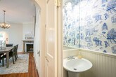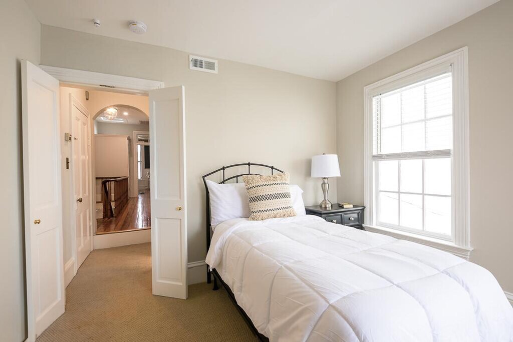 Enjoy living in this fully furnished, 3-bedroom 2.5-bathroom Victorian home with a 21' wide front porch that sits high immediately behind the Supreme Court. Beautifully designed for classical entertaining and enjoyable family living, it radiates warmth and welcome. Generous-sized living spaces, fabulous light, and almost floor-to-ceiling windows make this house a treat. The home features heart of pine floors, gorgeous chestnut French doors, deep crown moldings, and period fireplace mantels. Additionally, there is a rooftop patio atop the garage. This home offers three large bedrooms equipped with a king-size bed, queen bed, and a twin bed, providing comfortable sleeping arrangements for various needs. The classical charm extends to the fully equipped kitchen, perfect for preparing meals at home, complemented by beautiful heart of pine floors and chestnut French doors that add a touch of elegance. Parking is available for an additional $10 per day. Located just around the corner from the US Capitol and Congress, the Folger Shakespeare Library, and a few blocks from Capitol South Metro and Union Station Metro, this home offers easy access to Eastern Market shopping, Whole Foods, Trader Joe's, and wonderful restaurants, ensuring convenience and a vibrant local culture. [SI]