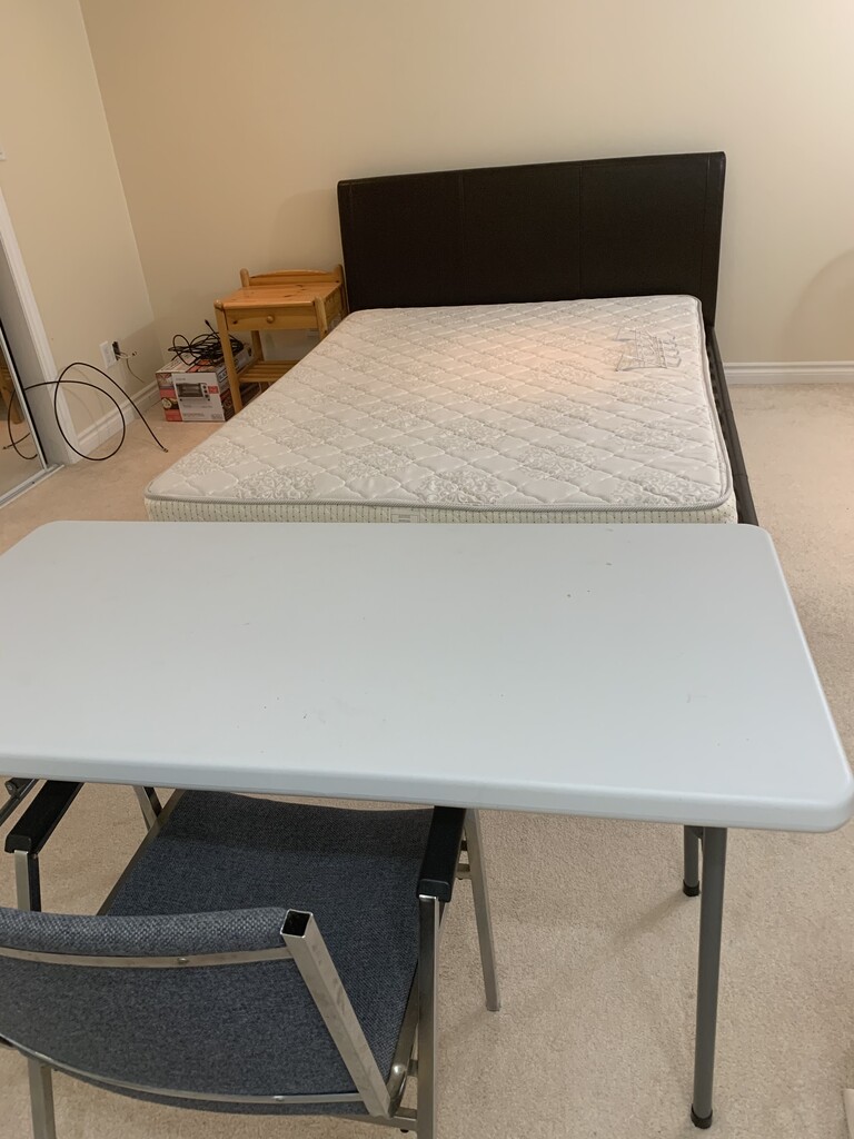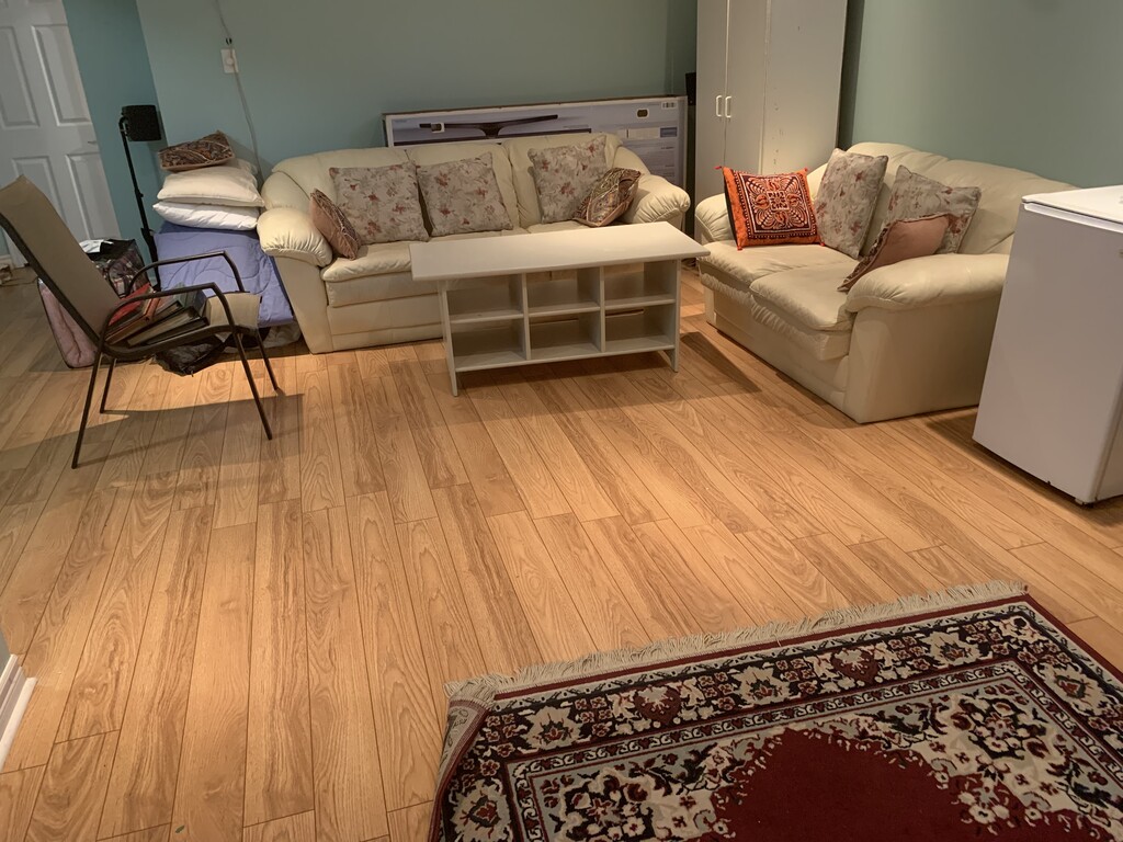 1 Bed Room + 1 Living room + Private Washroom + Break fast/ Lunch/ Dinner space Spacious Basement apartment +1 Parking in Drive Way Sunny and spacious semi-furnished Basement in a quiet and safe neighborhood in Markham. One spacious Bed Room with bed ( no mattress); one big living room with TV, musical system; leather sofa and center table; one breakfast - dining space with IKEA counter top and drawer, big sized refrigerator; micro oven; Induction oven, Coffee maker, ELECTRIC Kettle breakfast -dining glass table with four chairs; full washroom with shower space. Warming food in micro wave or light cooking on induction oven ok but no separate kitchen facility. Kitchen and Laundry to be shared with Owner. No separate entrance. Entrance is common. Freshly painted. No pet in any form. Preferably no beef or pork to be cooked. Water, Electricity, Gas Powerful Internet included. Single working female or male or a married couple with good reference and employment history only. One month's rent in advance as Security Deposit