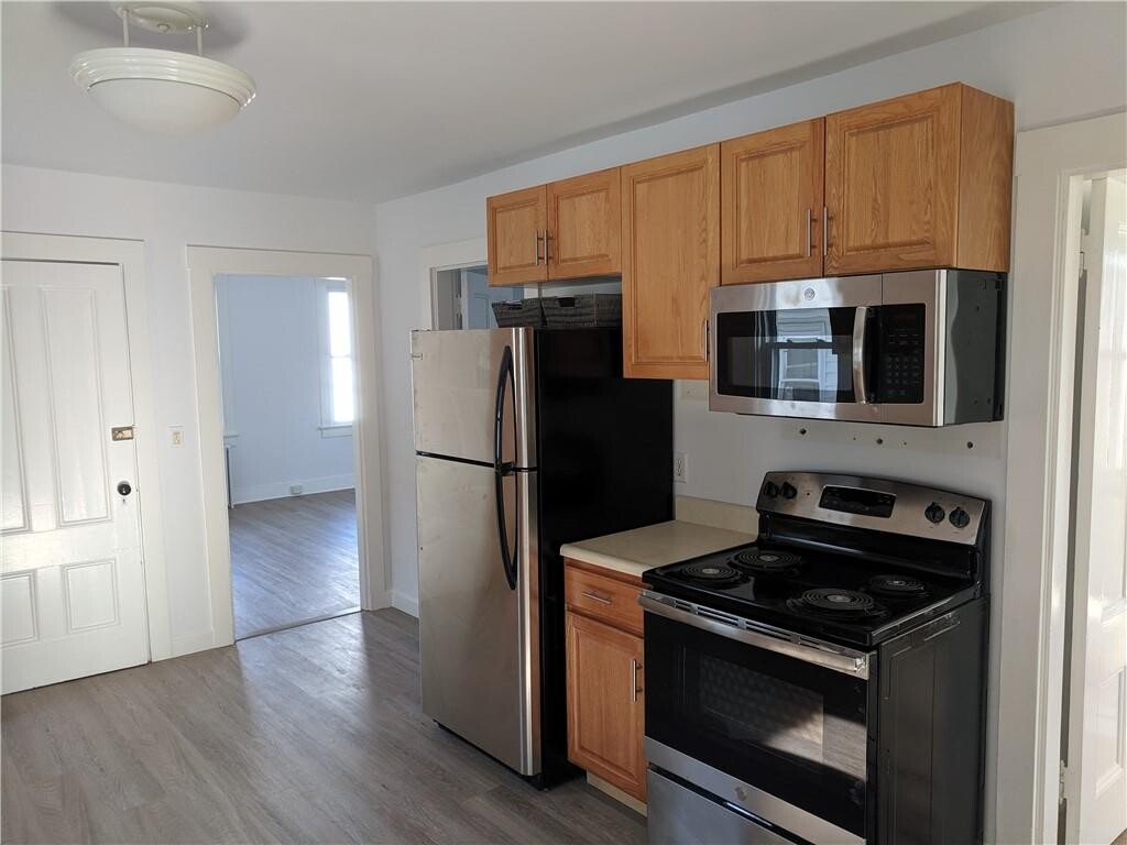 Yearly Lease Available OCT 1 or Oct 15 2025. Downtown Newport Living within a minutes walk of shopping and restaurants. Terrific Sunny very sunny,first floor 2 bdrm +1 bth apartment that INCLUDES -water and a Garage Space! Nice interior,with stainless appliances includes a dishwasher,new light fixtures and ceiling fans,and flooring that is slick looking and easy to clean. 2 bedrooms have carpet,1 full bath,additional very large hallway closet or make an office,plus storage available in the basement. Laundry available in the building. Small shared yard space. Pet/dog negotiable. Sorry no cats.