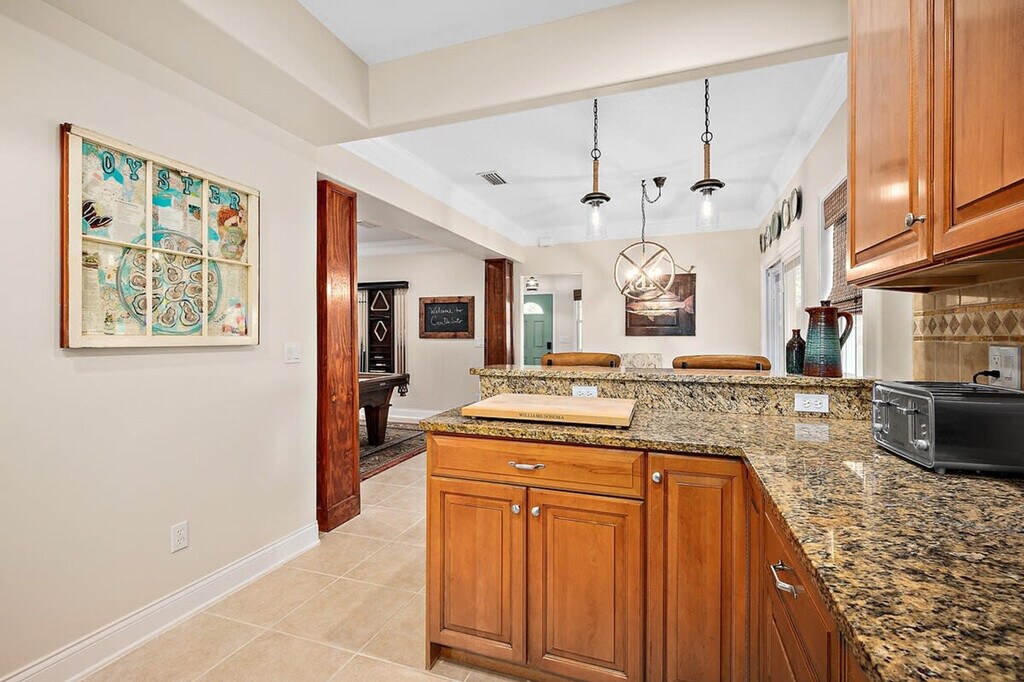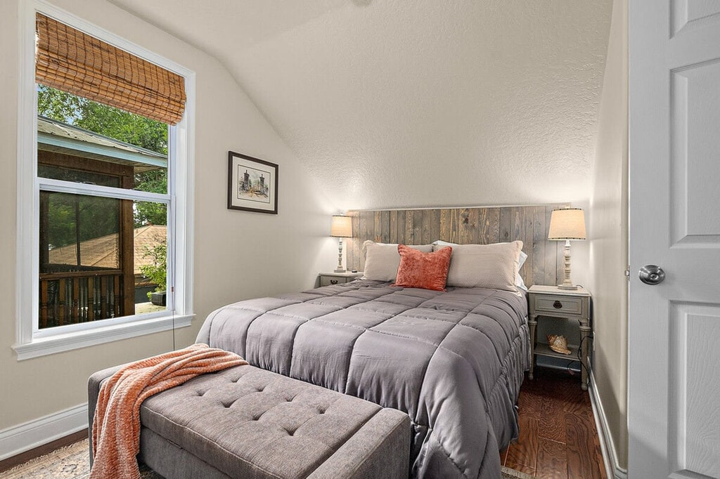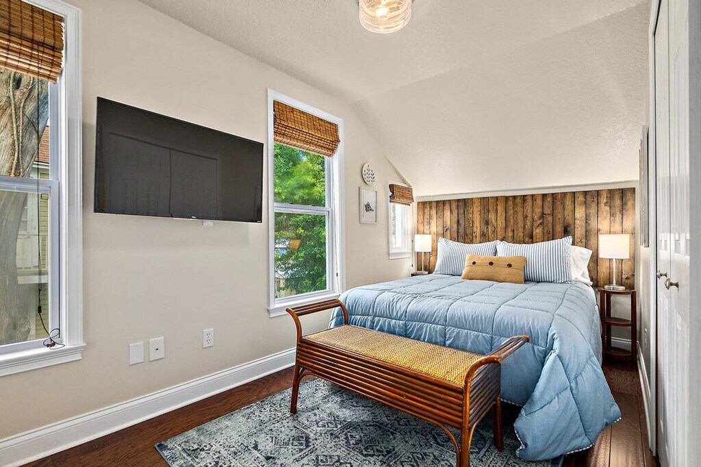 Feel at home in this meticulously renovated and charming 1920's home in the heart of downtown St. Augustine's Historic District. This 2-story home may not be suitable for all guests, as there are 3 steps at the entryway and several small single steps inside. Casa DeSoto has plenty of space for everyone, featuring 3 queen guest bedrooms with electronic, adjustable bed frames (one downstairs, two upstairs) and a king master suite with a private bathroom and jetted tub. Two additional full bathrooms are also available on each level of the home, well stocked with fluffy, white towels. The kitchen provides all the necessities and more for your in-home meals, including well-stocked glasses, plates, and silverware, along with all of the proper cooking utensils. Appliances include a crockpot, coffee pot, Kuerig (beginning supply of k-pods provided at check in), French press, toaster, hot water kettle, and electric skillet. Great amenities like a pool table, fire pit, propane grill, and outdoor games offer the perfect ways to relax after a day of exploring. A complimentary bottle of local wine awaits your arrival to celebrate the start of your vacation. The backyard is a beautiful oasis with an abundance of seating options to take in the lovely landscaping that includes over 50 different types of plants and a bird feeding tower that attracts many various species. Bike rentals, including free drop-off service, are available. Nestled on a quiet one-way street with plenty of coveted off-street parking, the home is a short 2 block walk to all of the city's famous attractions. Many of the top St. Augustine attractions are just minutes away by foot from the home. Enjoy some local favorite restaurants nearby such as La Nouvelle, Ice Plant, and St. Augustine Fish Camp. The home is located within leafy Lincolnville, home to the largest concentrations of late Victorian era buildings in the city and listed on the National Register of Historic Places. Being within walking district of St. Augustine’s tourism epicenter, Lincolnville is a 140-acre walkable neighborhood and also holds the distinction of being one of the most charming. Experience flavorful dining, art, and culture with an abundance of entertainment right on your doorstep. The house is 3 blocks from the city marina with daily boat and slip rentals where guests can bring along their own boat and see the city from a different perspective. Jump aboard the Trolley to take an easy tour of the city. Experience sun, fun, history, and mystery —From the Castillo de San Marcos National Monument to the Ripley’s Believe It or Not Museum and everything in between there is something for everyone and all just minutes from the house. Quiet hours are between 9 pm and 8 am. The minimum age to book is 25, and the primary guest on the reservation must be present for the duration of the stay. If you have more guests on the premises than you have notated in your reservation, an additional fee may be charged. There are no pets allowed on property at any time. No vaping or smoking is allowed whatsoever on the property, including the front porch, and if evidence of smoking is found, you will be subject to an additional cleaning fee. The home has an actively recording security camera installed at the front door of the home, and an attempt to remove, tamper, or disconnect the internet to Ring may result in the reservation being canceled and guests requested to vacate the premises. Guests who stay past checkout time will be charged the additional fee of $50/hr. [SI]