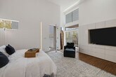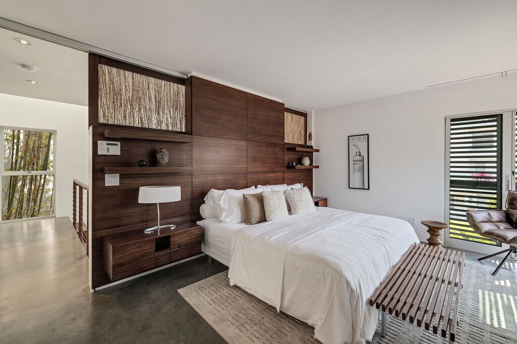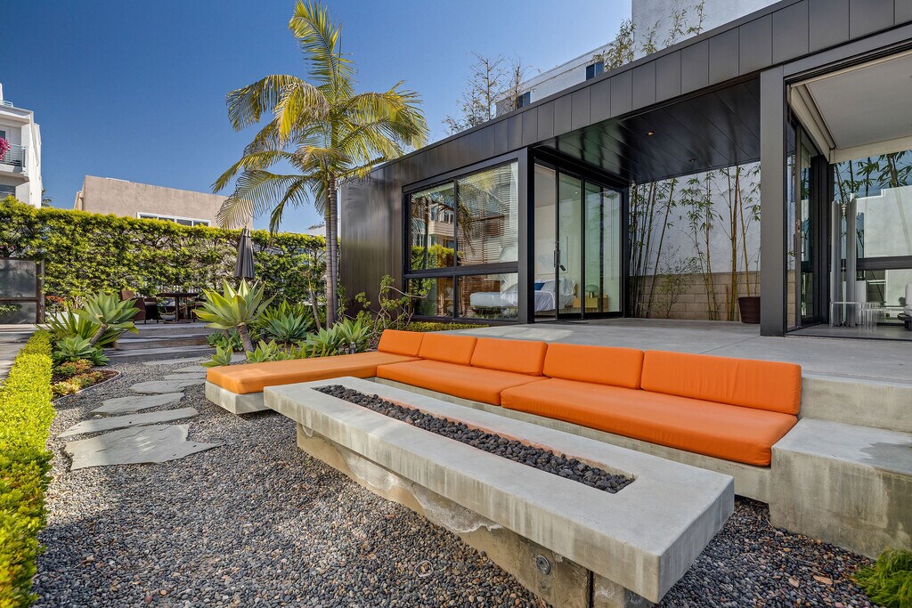 Steps from the sand on the Marina Peninsula, Shiokaze Villa is a fully furnished, air-conditioned beachside oasis that seamlessly fuses modern luxury with serene Japanese-inspired design. Situated on two adjacent lots (25 & 27), this one-of-a-kind compound features two architecturally-significant residences—a David Hertz-designed main home and a separate Marmol Radziner prefab—offering a total of 5 bedrooms and 4.5 bathrooms. Crafted from exotic woods, steel and concrete, the main residence is a study in elegance and innovation. Ipe wood slats, corner-opening glass doors, and sliding screens create a mesmerizing interplay of light and shadow while blending indoor living with ocean breezes. The open-concept first floor features radiant-heated concrete floors and a gourmet Henrybuilt kitchen with quartz countertops, a large central island, and ample storage. The adjacent family room with sectional seating and flat-screen TV opens to a private outdoor lounge with a sparkling pool, jacuzzi, and lush landscaping. The living room features Italian furnishings, a 70-inch TV, and sliding glass doors leading to a tranquil courtyard. The dining area comfortably seats eight. Upstairs, the ocean-view primary suite includes a spa-like bathroom with an indulgent Japanese soaking tub and steam shower. Two additional bedrooms share a beautifully appointed bath, and a laundry room adds convenience. A dramatic catwalk connects to a flexible office or guest suite with soaring ceilings and a private half-bath. The third floor houses an inspiring office space with custom Henrybuilt furniture and opens onto a rooftop deck with a fireplace and ocean views. The home is outfitted with original international artwork, a dramatic floating ipe slat staircase illuminated by skylights, extensive built-ins, smart home systems, a two-car garage, and three extra parking spaces. The adjacent 660 sq ft Marmol Radziner Rincon 5 guest house is a minimalist gem that promotes indoor-outdoor living with glass walls and oversized sliding doors. It features sleek cabinetry, European appliances, a private bedroom with a Heath Ceramics-lined bathroom, and opens to a private poolside area with a firepit, fountain, and jacuzzi. Lease term of over one year required.