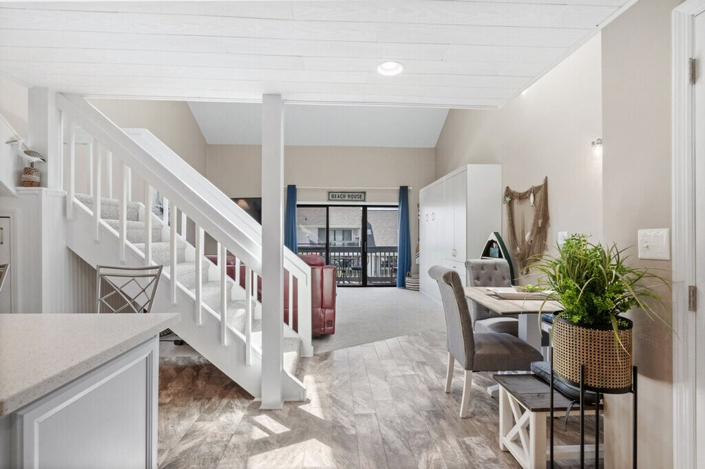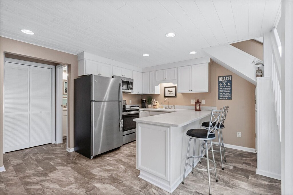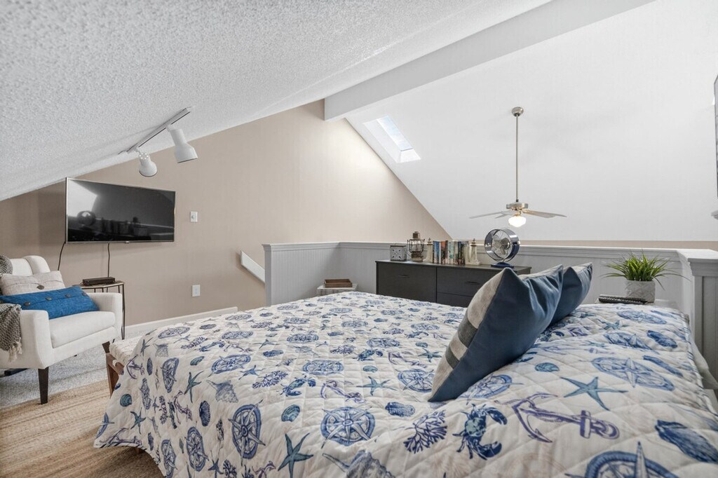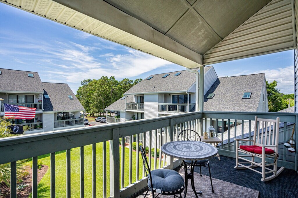 Feel at home in this loft-style condo located in Golf Colony of Deerfield, arguably the nicest and most luxurious property in Golf Colony and possibly all of Surfside Beach. Entering the main condo door on the second floor, you will have a short flight up to the main living level. No expense has been spared in this unforgettable property. As soon as you ascend, you will find a beautifully remodeled kitchen with all brand new stainless appliances, granite countertops, bar stool seating for two, and an additional dining table for four just adjacent. There is a fully remodeled bath with a large stand-up shower just off the kitchen and a large closet for clothing storage. You will love the vaulted ceilings with tons of natural light flooding in. The living room contains additional clothing storage as well as a comfortable queen murphy bed that conveniently folds away to provide more space when not in use. There is also a fully covered porch with a small dining table and seating with a bird's eye view of the pool, grilling deck, and garden courtyard just below. Heading up to the loft, you will find another comfortable queen bed with a 40+" Roku TV, and all TVs have premium cable in addition to streaming options in case you want to watch local channels. The pool deck below has plenty of lounge chairs plus dining tables with umbrellas, and the grilling deck with charcoal grills and smokers can't be beat! Linen service for all beds in the home, as well as bath towels, hand towels, and washcloths, is available for an additional fee of $50 for your stay. Located in the heart of Surfside Beach and just 1.5 miles from the beach, you will have full access to the condo with no shared spaces other than the pool deck and grilling areas that are shared with a small amount of condos in the community, meaning they are rarely ever full, even during peak summer months. The pool is also open year-round! No pets or smoking are allowed inside the condo. Routine pest control treatment may be scheduled during your stay, typically occurring on the second Monday of odd months. The pest control technician, who is fully licensed and insured, will need access to your unit to perform the service and will knock before entering. A fine may be applied if entry is refused. [SI]